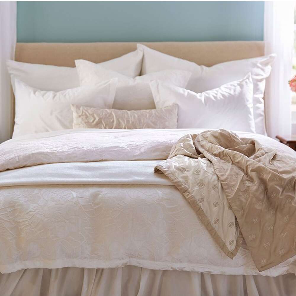 Please be careful with lotions and medications that may come in contact with your linens. Avoid products with alpha hydroxy, retinol or any bleaching agent as they can discolor and destroy the fabric.