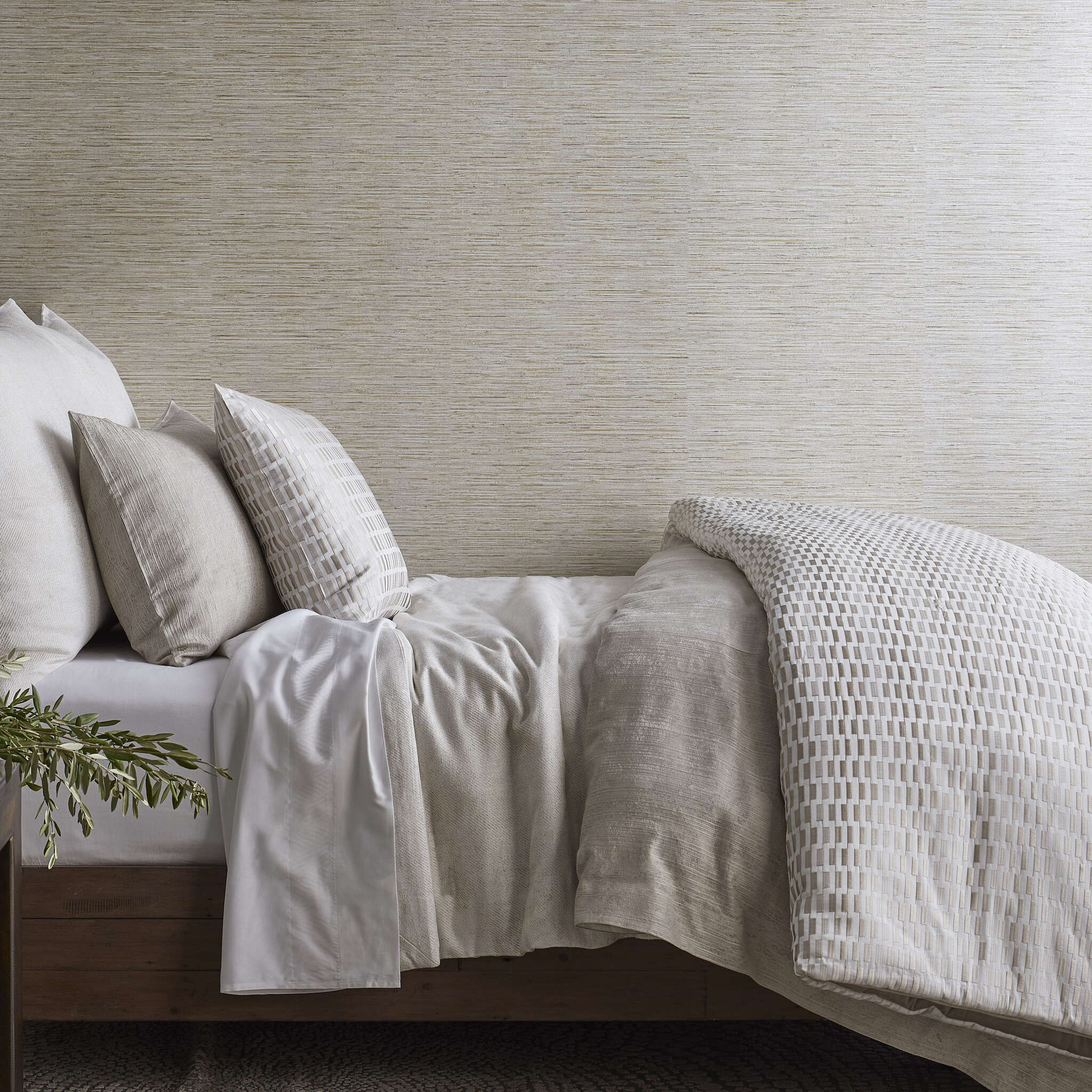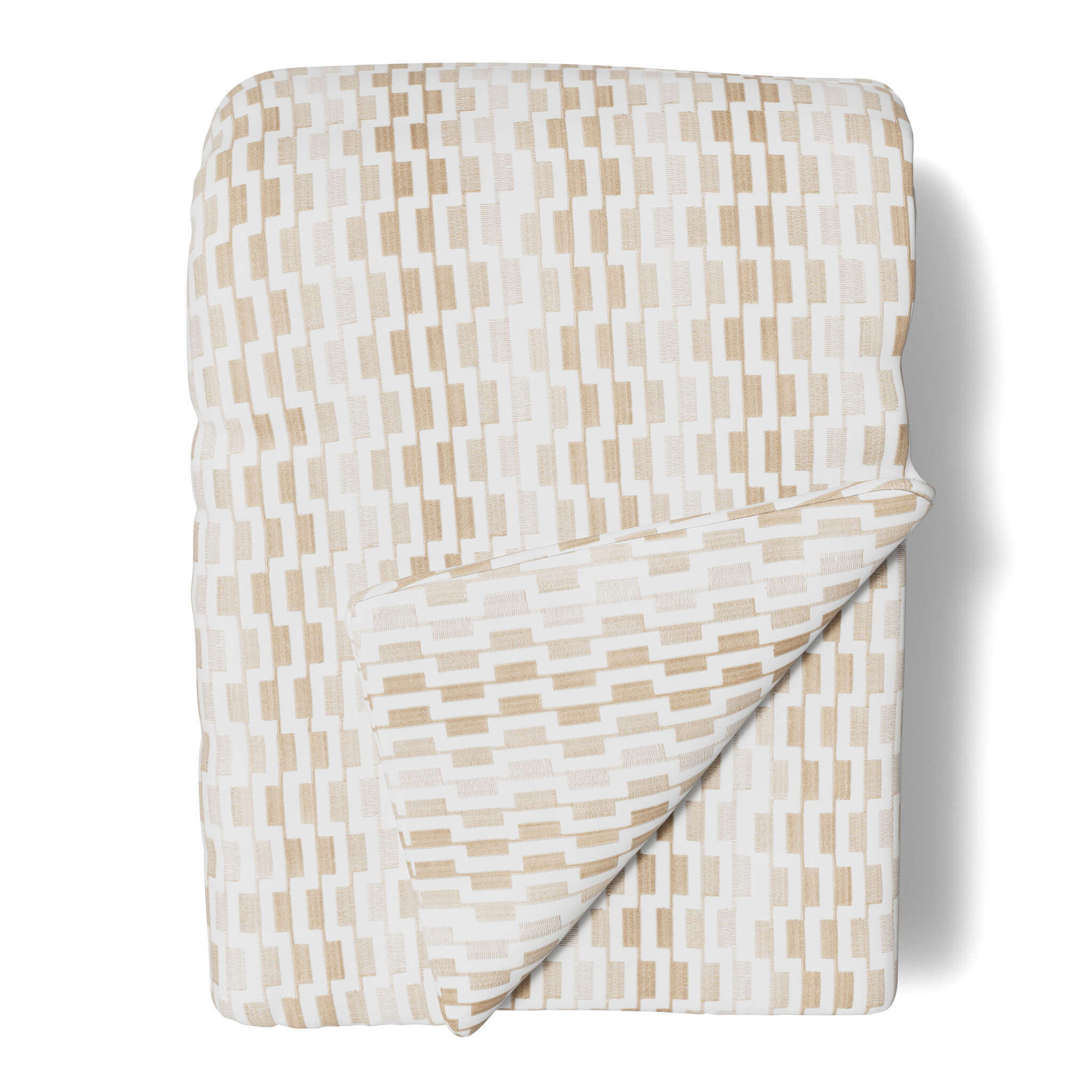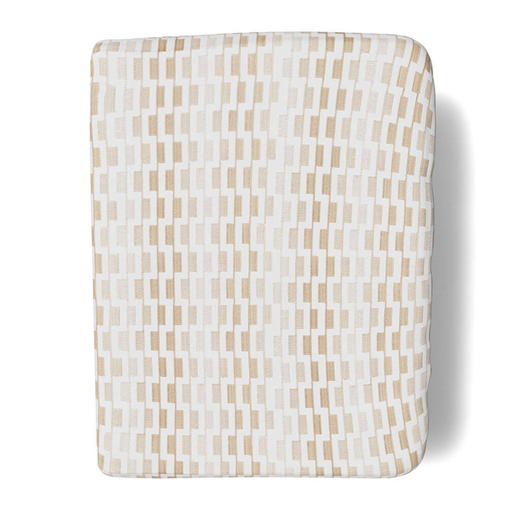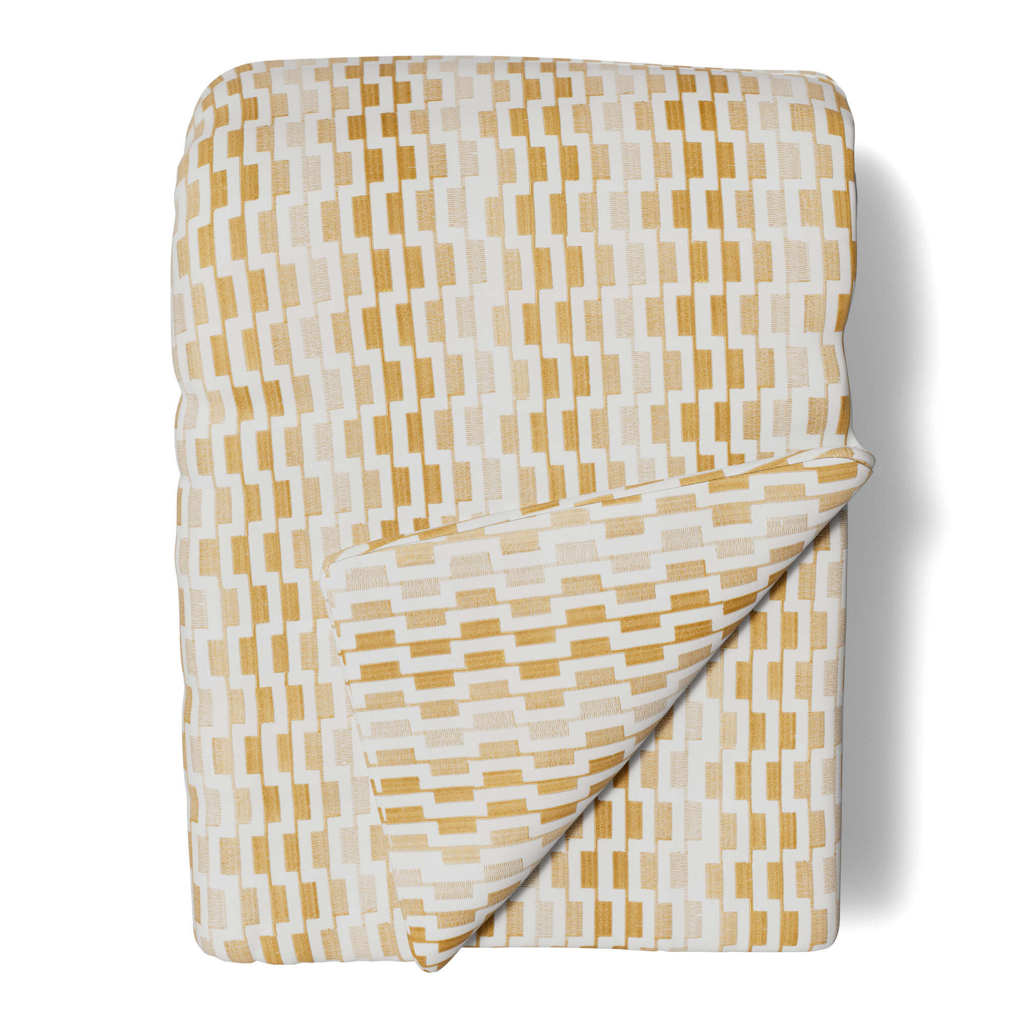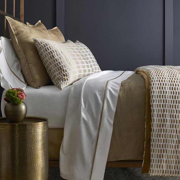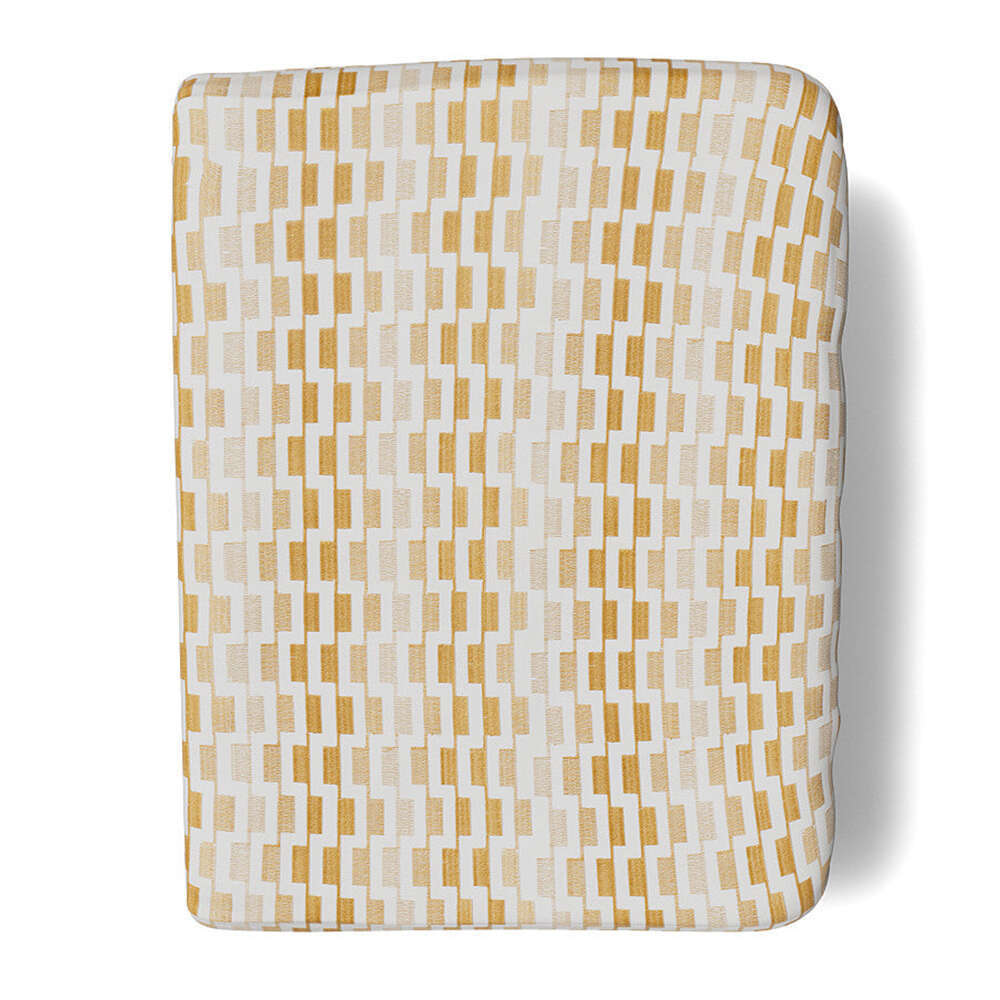 Tiny rectangles of embroidery dance across this 100% cotton fabric. Available in palladium and gold, two very precious metals.