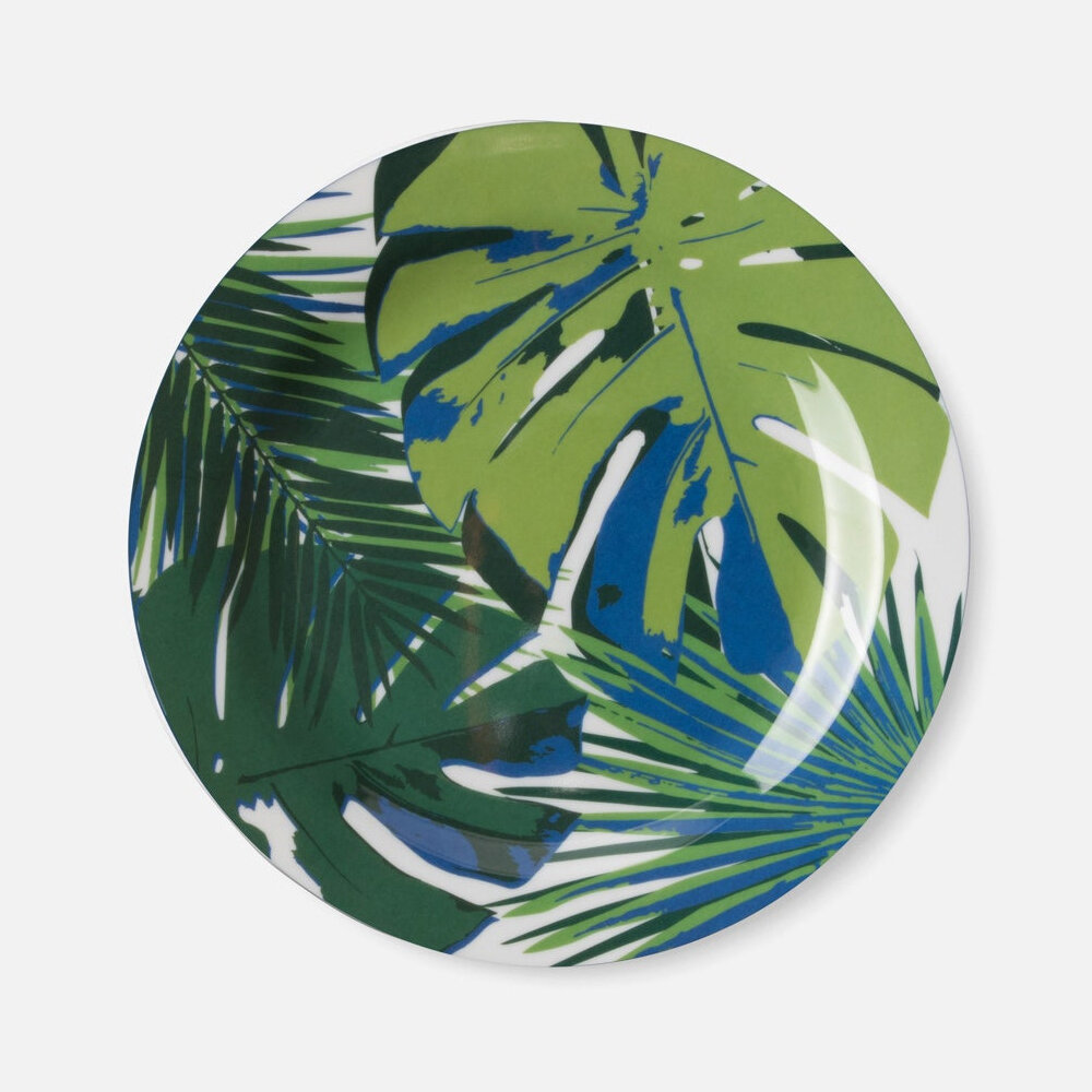 Outdoor-approved melamine plates with tropical flair.