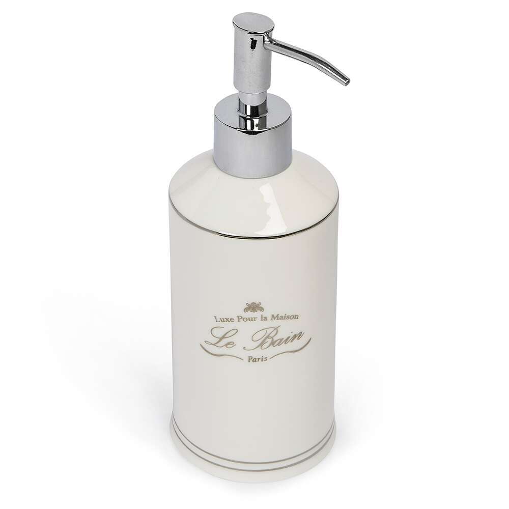 Porcelain with glazed finish Platinum-toned detailing Accented with the French text: 'Le Bain' (the bath) 'Luxe Pour la Maison' (luxury for the home)