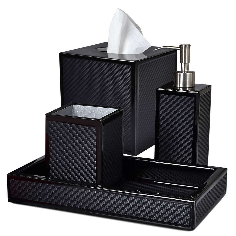 Carbon fiber, the tech marvel material found in aeronautics and motorsports is now available on bath accessories. Artisans use 3M DI-NOC to achieve the same effect; durable, washable and handsome.