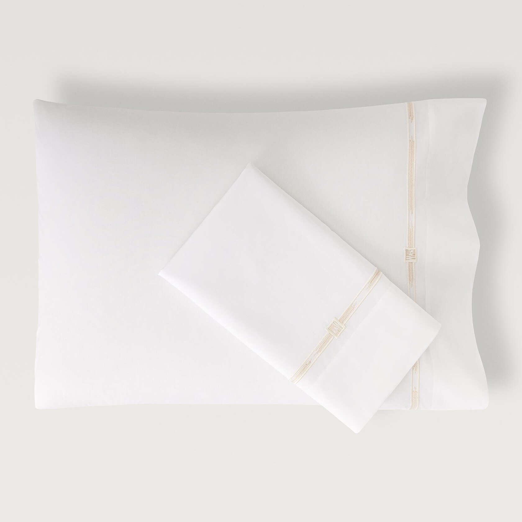100% Egyptian cotton percale 400 TC with an embroidered double border hemstitch finish.