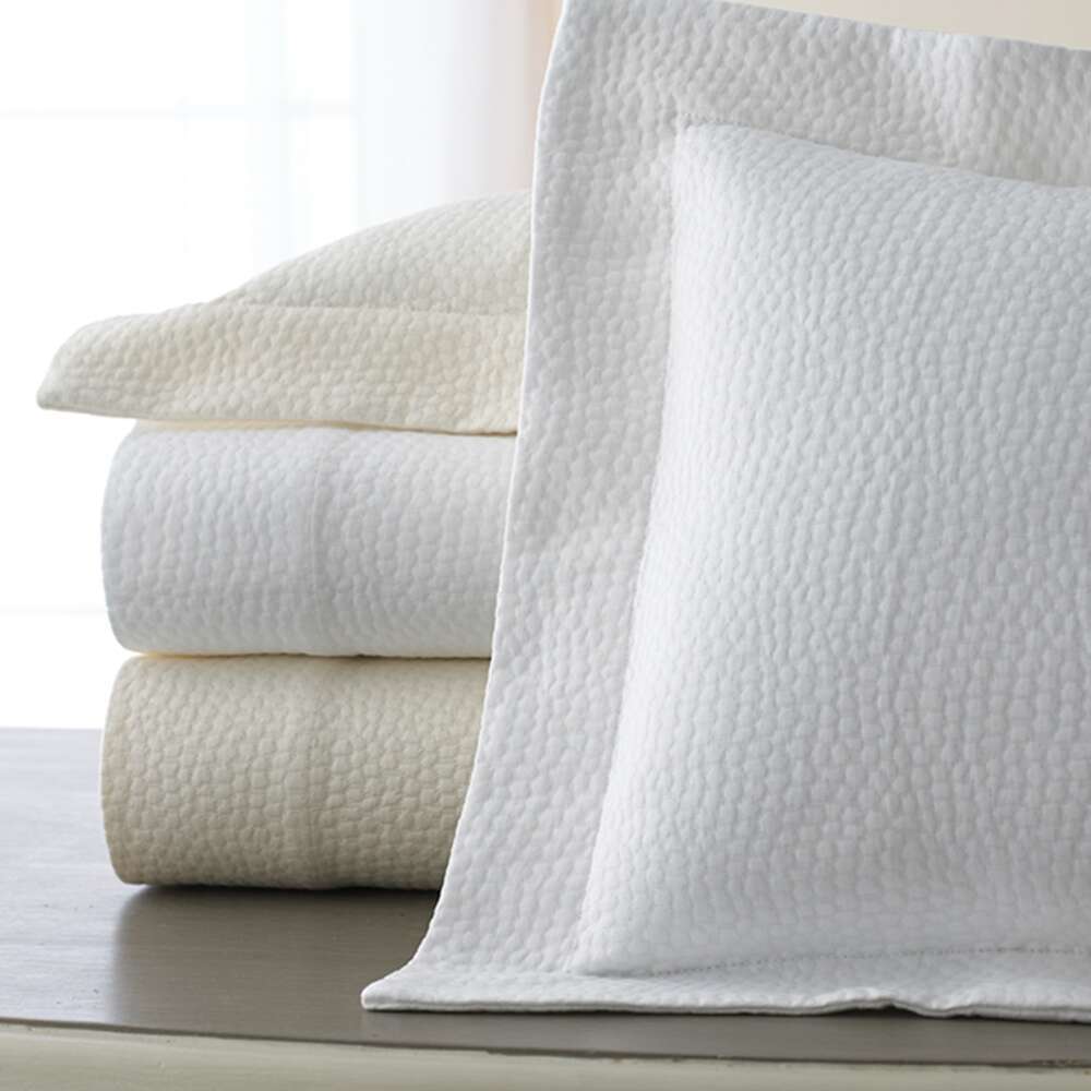 Our mercerized cotton “pebble” Matelasse available in Ivory or White.