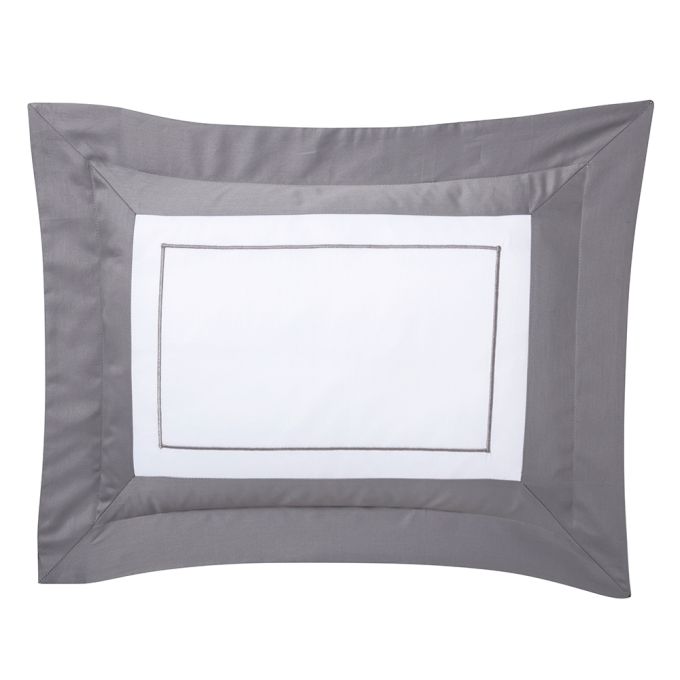 Shams in white with a contrasting flange and bourdon stitch. Envelope closure.