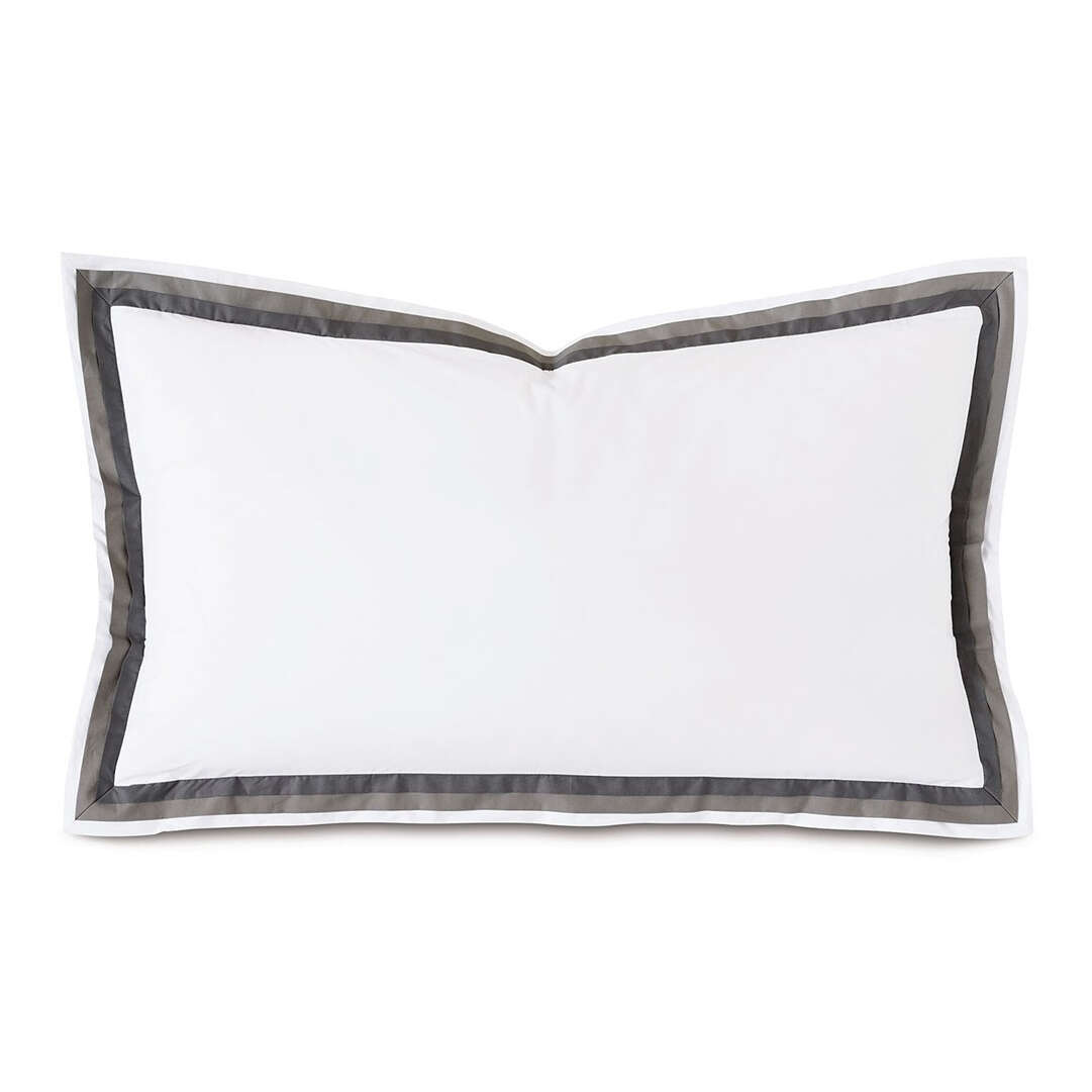Triple Flange Sham: White, solid 200 thread count printed percale king sham, Triple mitered flange edge finish.