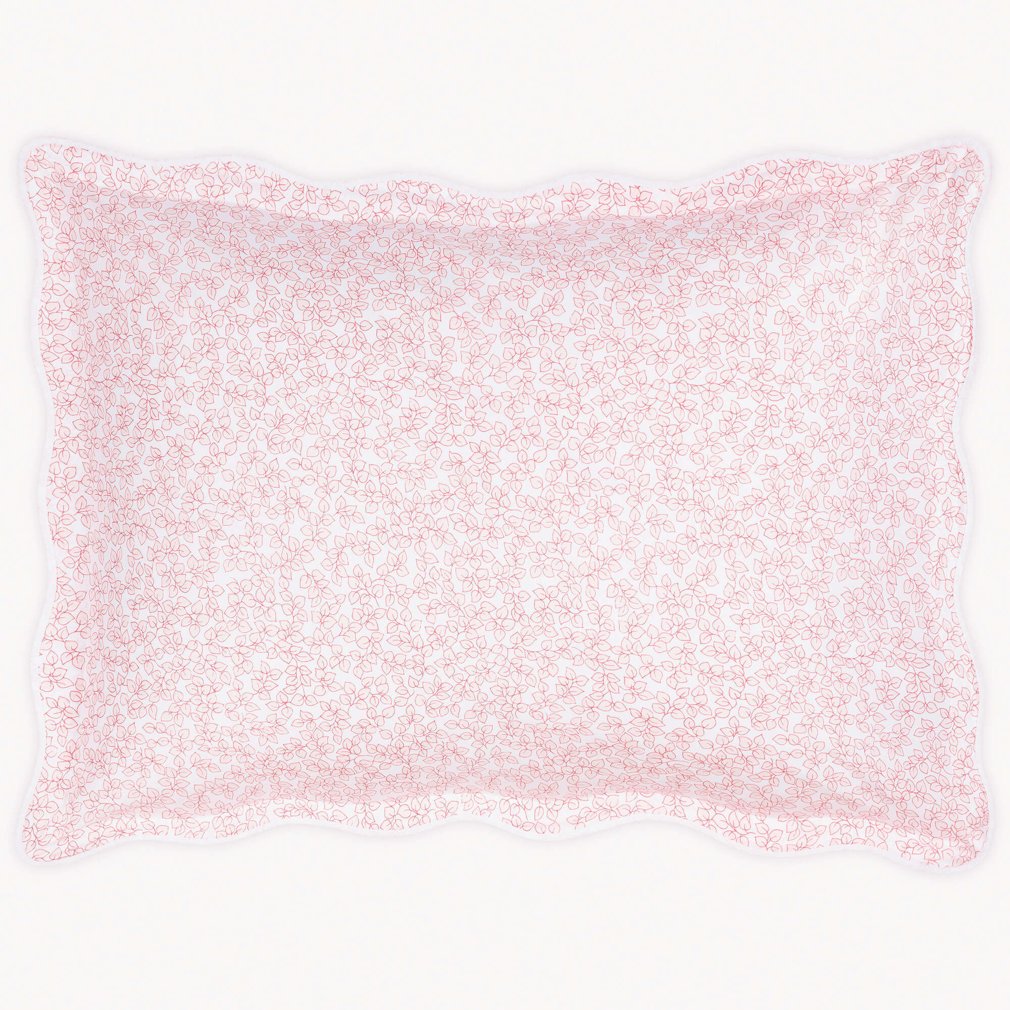 This sophisticated print is a true Matouk original, inspired by a textile found deep in our treasured archives. Margot's small, simply drawn leaves fit snugly together on our 500 thread count Luca Egyptian cotton percale, for a pattern that nearly reads as a solid color. The edges of each piece are finished with a subtle white scallop.