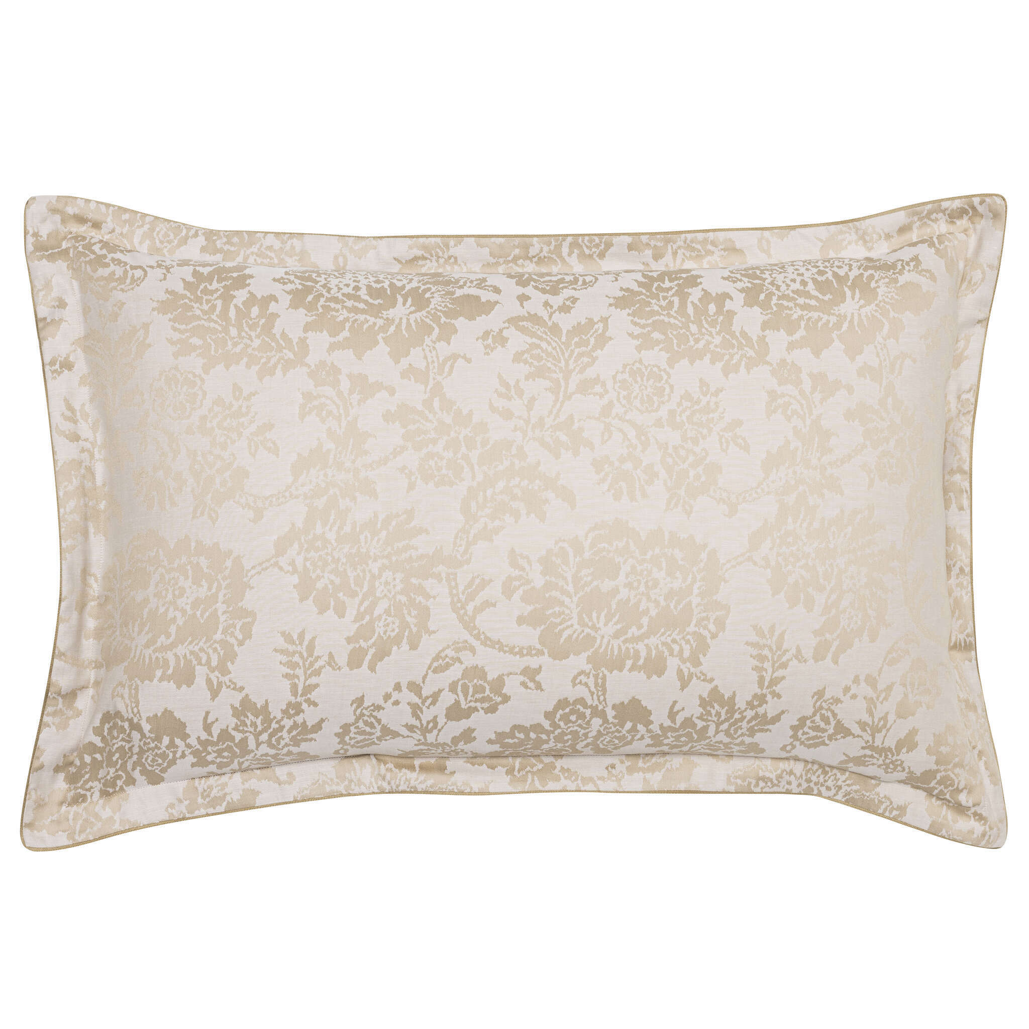 Sham: "Large flowers damask" jacquard pattern in front reversing to plain dye sateen. 1,18" flange, organic cotton sateen ribbon piping, double flap.
