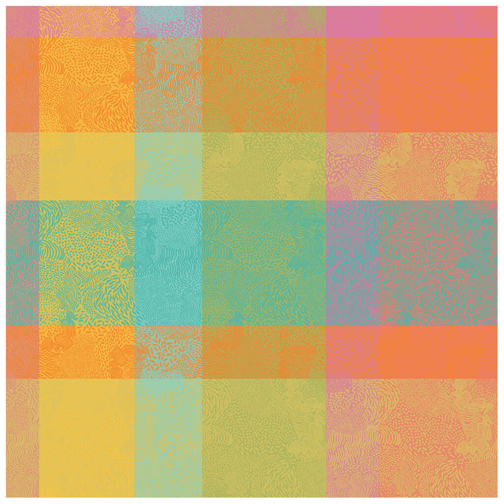 The Mille Vagues Cotton Table Linen by Garnier Thiebaut features a stunning design with flowing waves of spots and lines in shades of yellow, orange, blue, and pink. Hand-drawn by our in-house French artisans and jacquard-woven with extra-long staple cotton, it brings elegance and durability to your table.