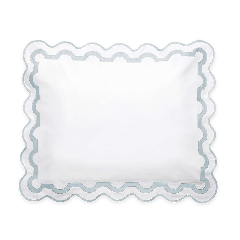 Inspired by a stroll down Worth Avenue in Palm Beach, the unique arch trim of shop awnings becomes a tasteful complement to our soft and luxurious 600 thread count Milano Egyptian cotton percale bedding, made in Italy.