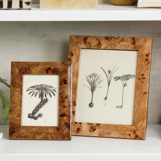 A rich burl wood veneer is softly sculped for this updated classic frame.