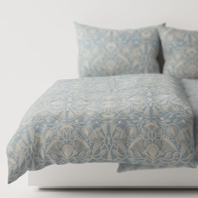 The Nouveau linen is decorated with harmonious tendrils and flower ornaments, while the pure linen also ensures pleasant sleeping conditions.