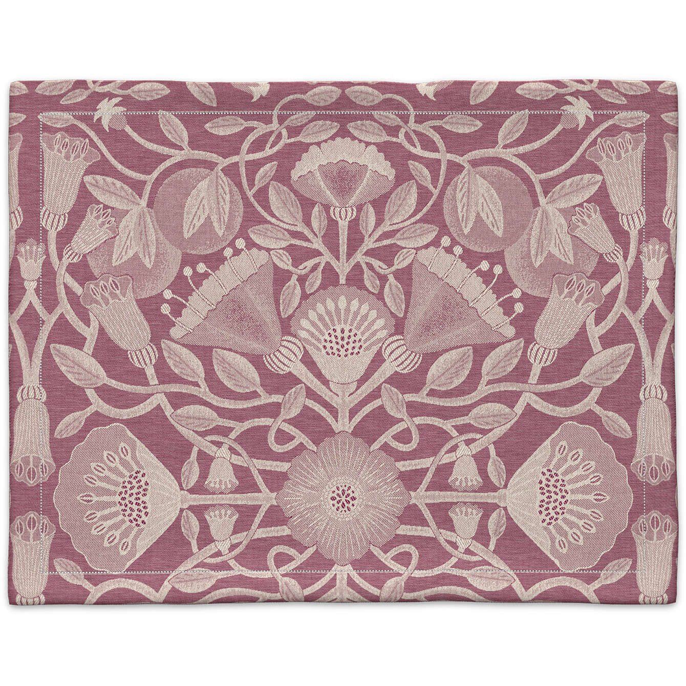 The Nouveau linen tablecloth lets floral tendrils and flower ornaments sprout and bloom in full splendor.