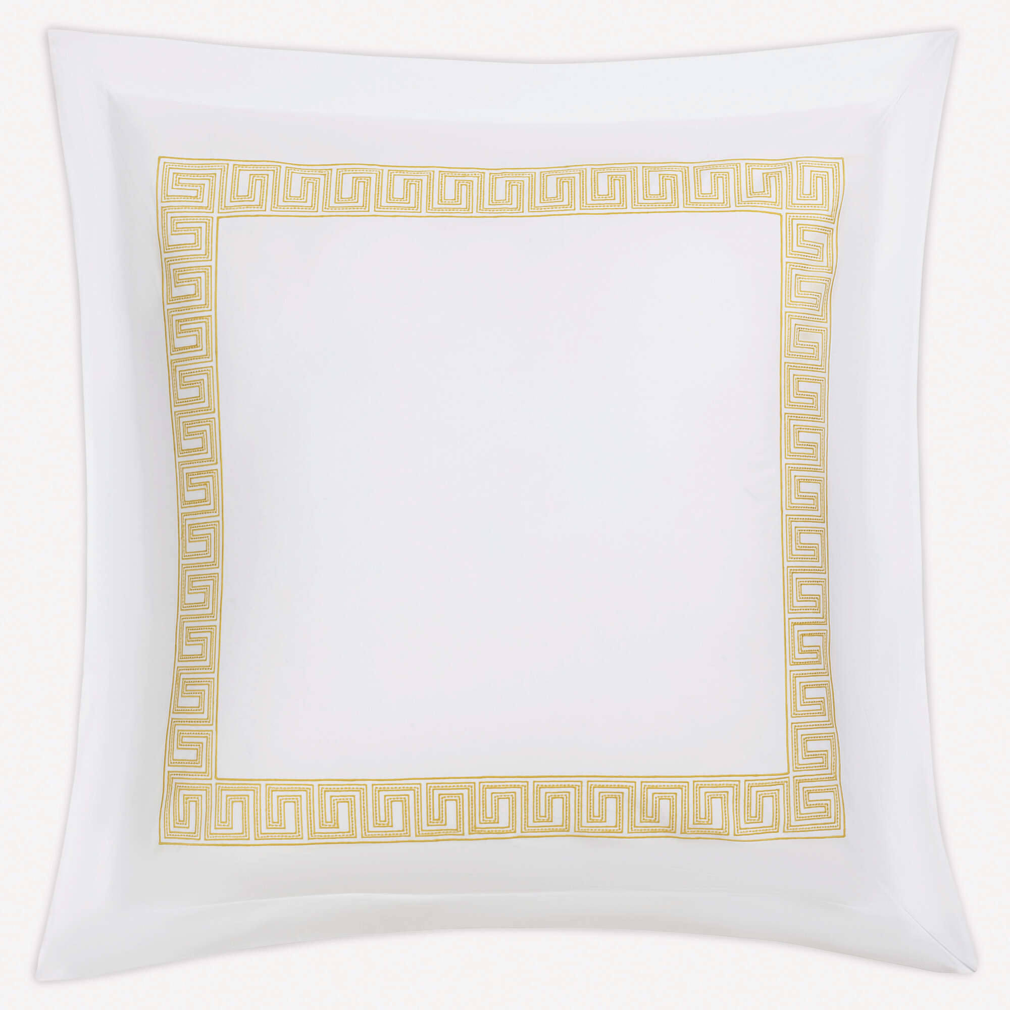 Inspired by an intricately beaded Schumacher tape, our boldly embroidered Ophelia collection embodies a traditional Greek key pattern with a bespoke sensibility. In 520 thread count Ceylon sheeting, it’s a playful, exuberant take on a traditional motif.