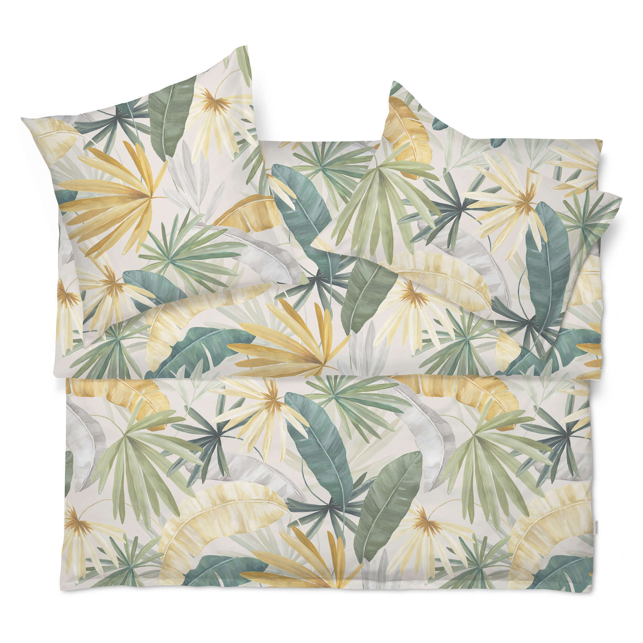 Palma bed linen is like an idyllic stroll through botanical gardens, where we forget the hustle and bustle of the big city and dream of a place where the sun's rays peek out from between large palm leaves in a wide variety of shapes and species. The interplay of colors and shades even triggers a slight tingle of wanderlust.