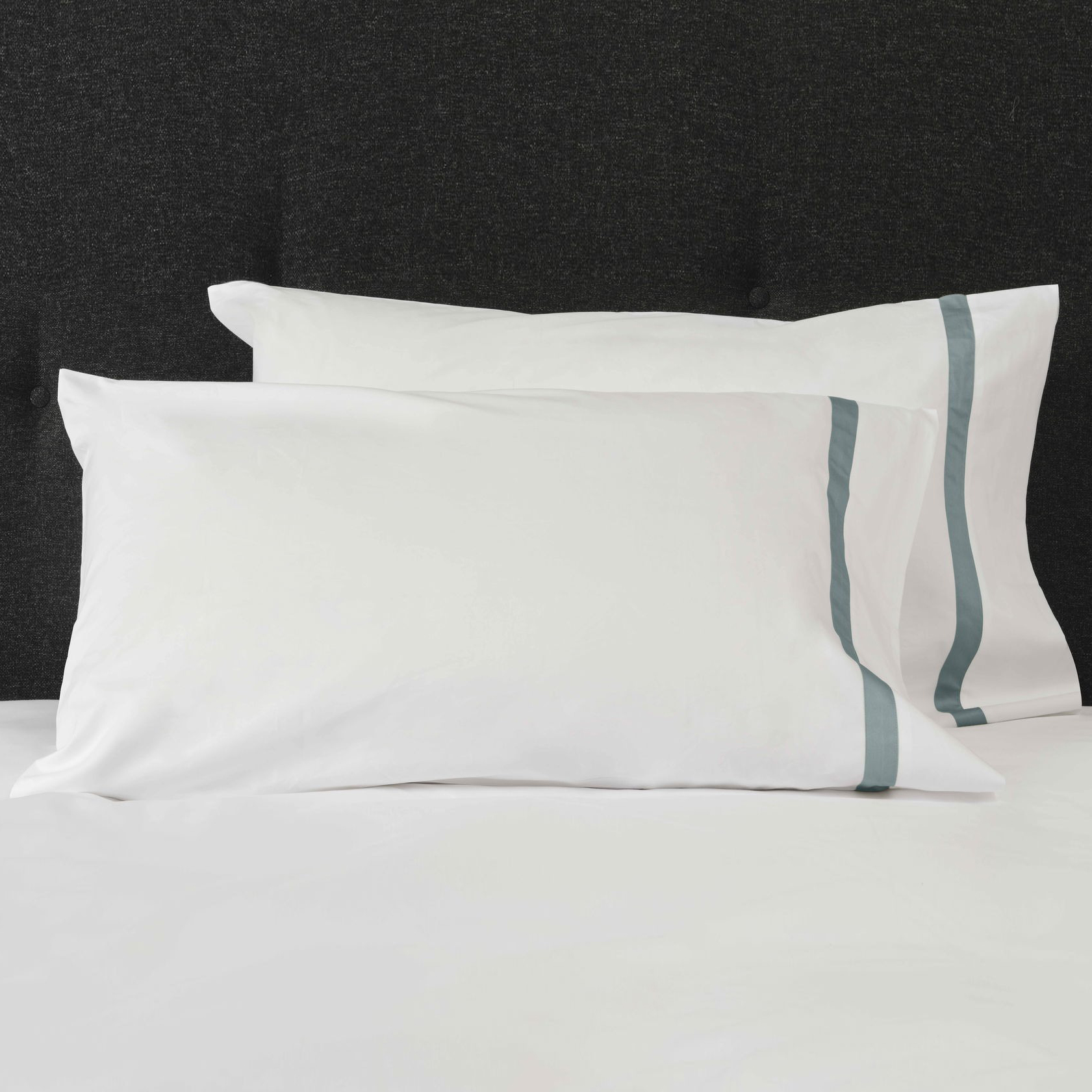 Pillowcases: cases; solid percale finished with a 1’’ sateen border across open end.