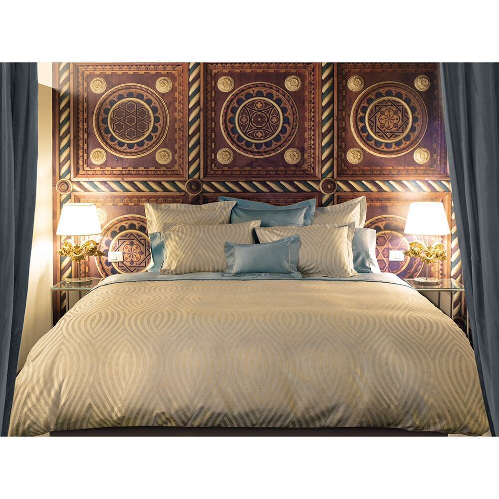 The geometric motif of Ponza is a beautiful motif reminiscent of gentle waves that rest on the bed in a soft and elegant way. The sinuous design is the result of the play among yarns of different colors that is characteristic of our precious jacquard fabrics.