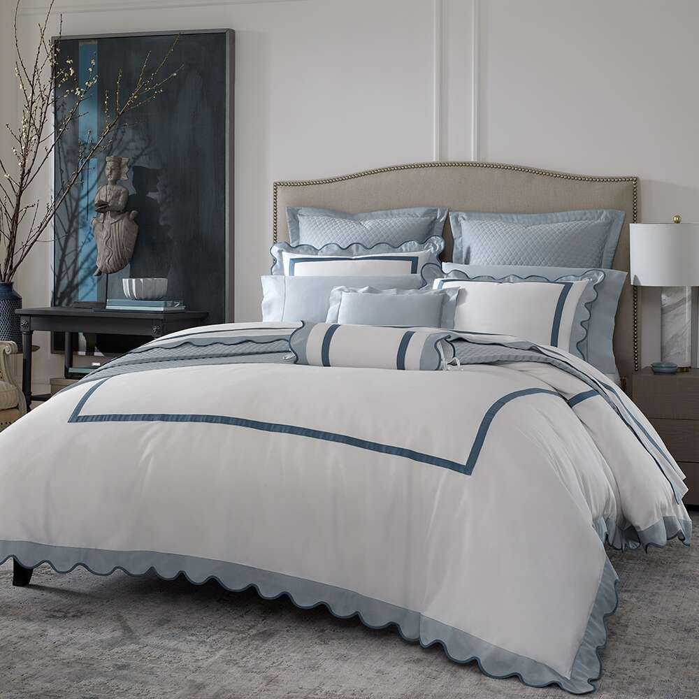 Escape to the Italian Riviera with a wave-like, scallop appliqué finish that adorns our soft and sumptuous Egyptian cotton Royal Sateen.