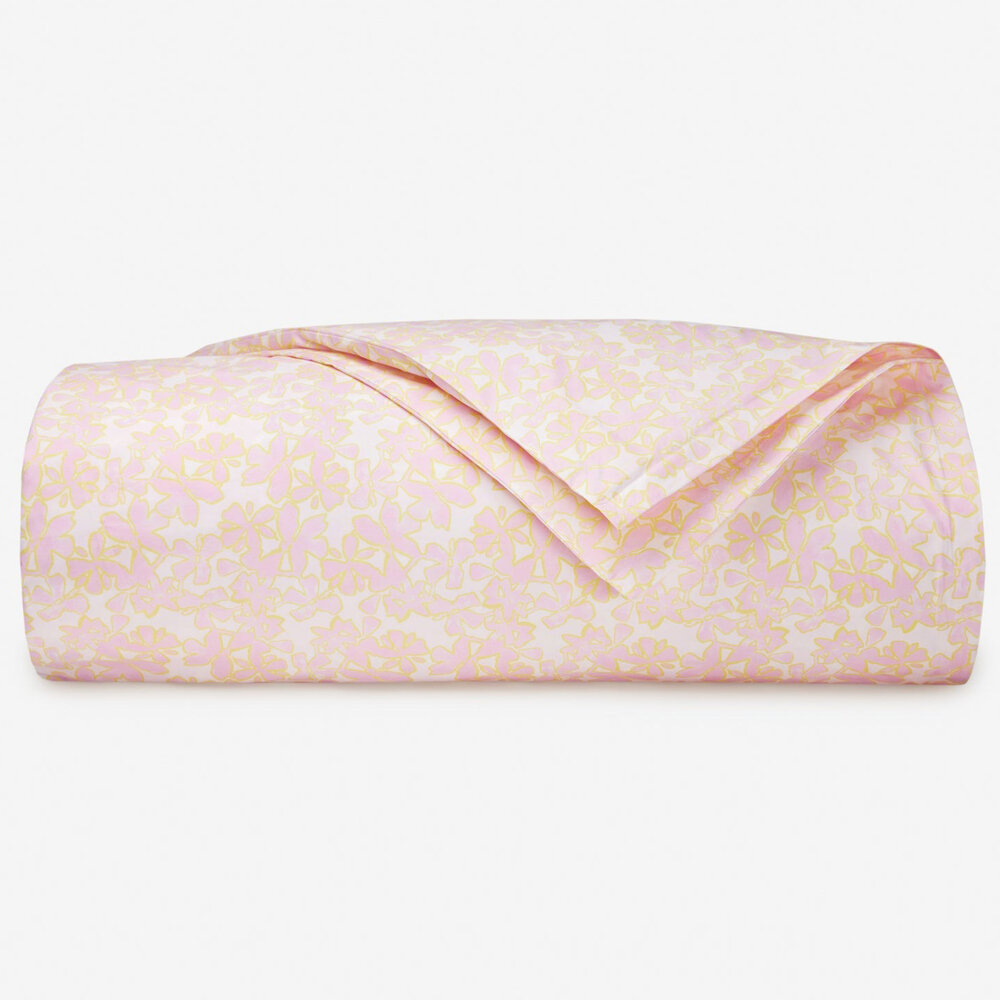 Petal-pink and lemon-yellow flowers bloom into an irresistible all-over pattern in Prato, a springtime-inspired collection. The coordinating Fiorina collection features a double border of yellow and pink satin-stitch overlaid by yellow and pink blossoms. Together, Prato and Florina create a bed as bright as it is enchanting, sparking many a sweet dream to come.