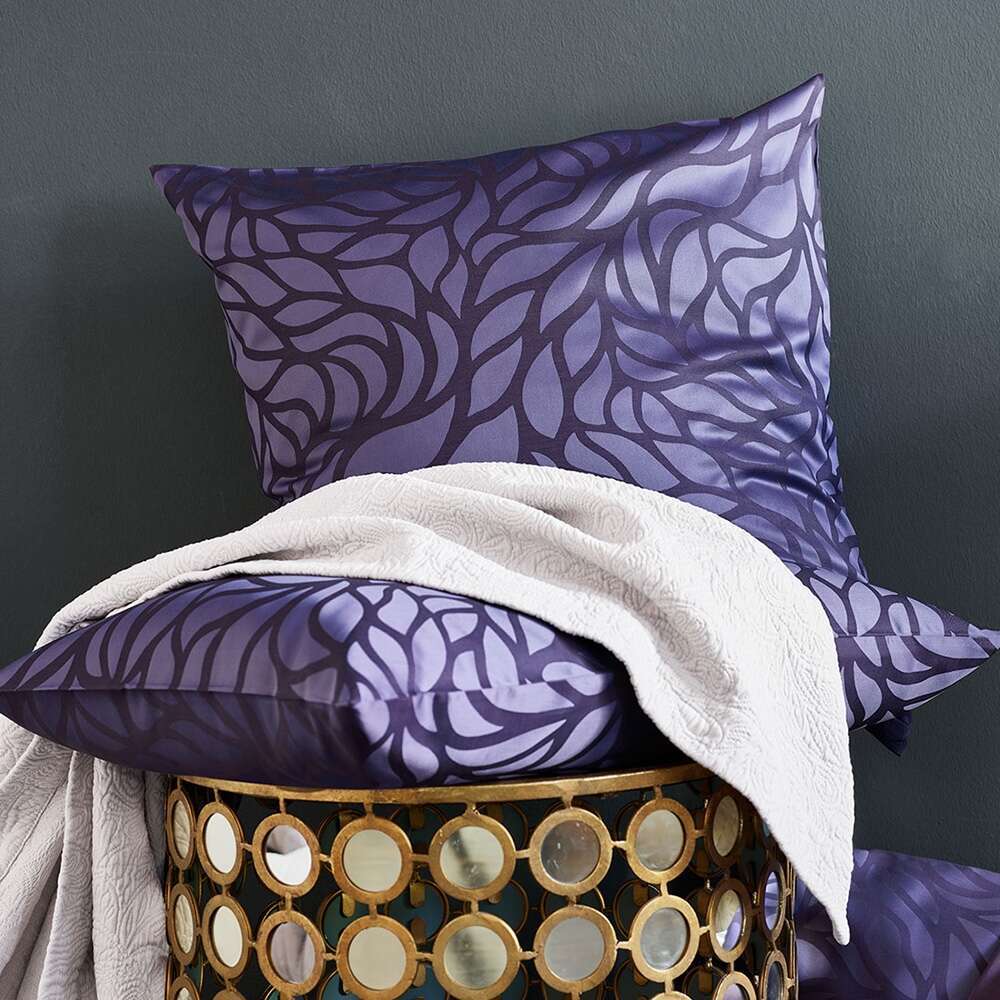 The Rami bedding design is surprising, with its exquisitely curving floral vines and boughs trailing across the entire scene as if growing along a wall. The monochrome background is elegantly wreathed in shiny satin veins. Rami is available in two luxurious, elegant colors.