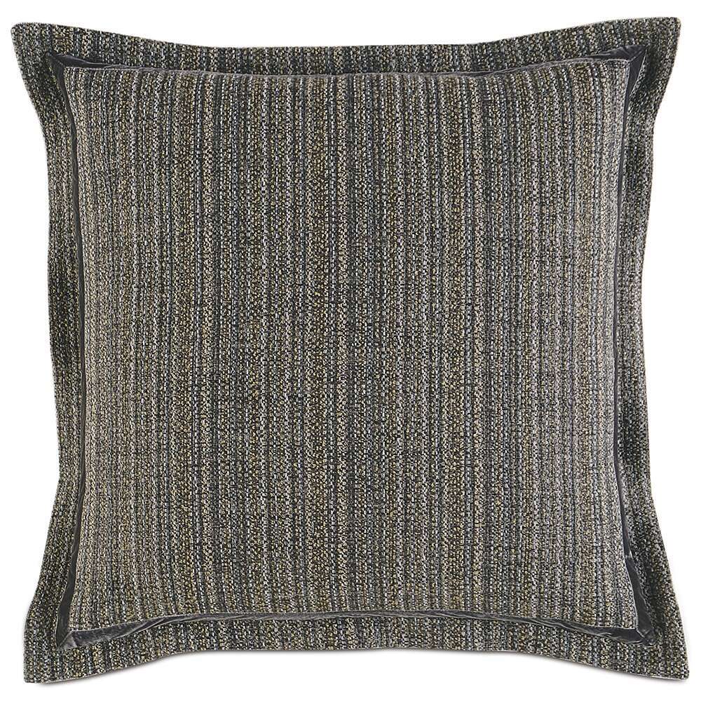 Euro Sham: Decorative pillow in a striped fabric. Flange and mitered ribbon on edge.