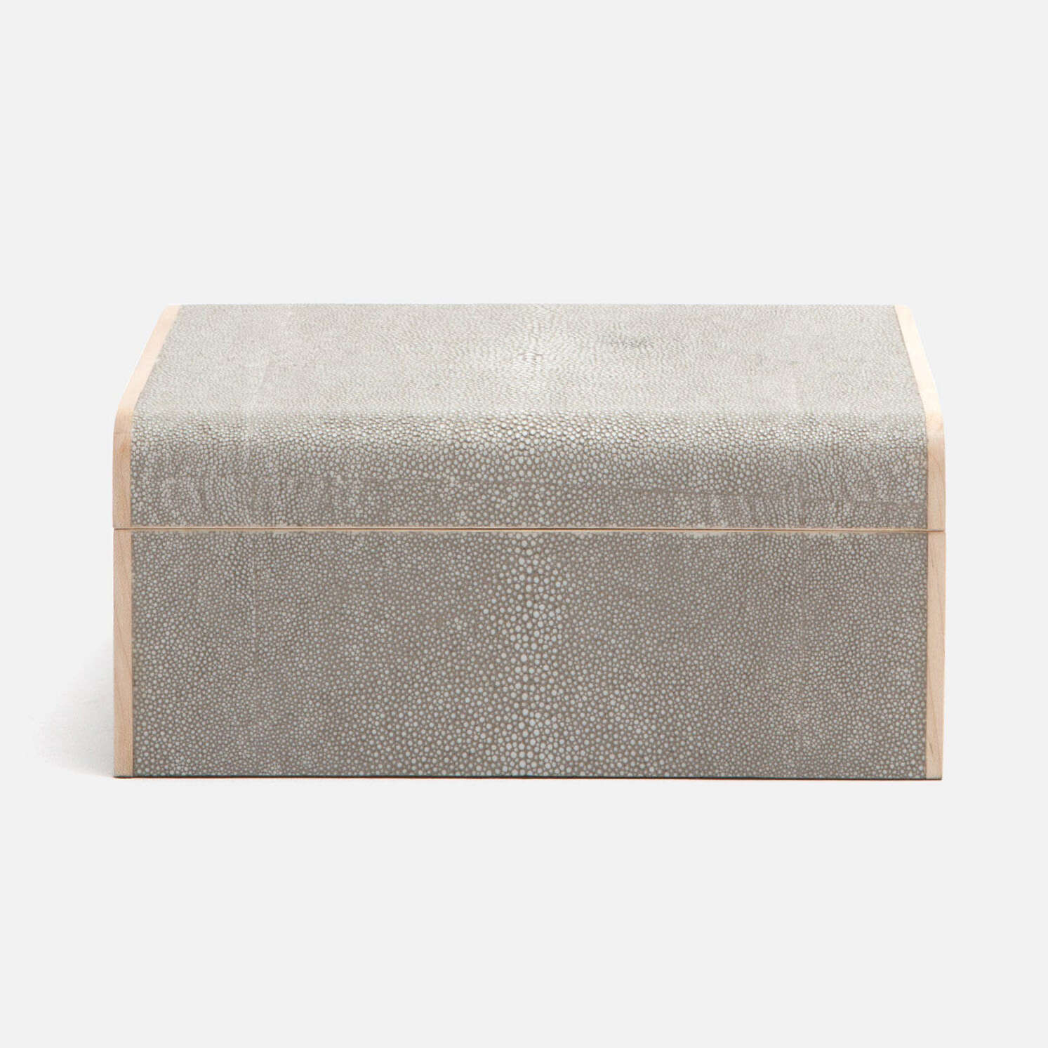 Beautiful faux shagreen jewelry box with rounded corners. Mirror and poly-suede inside.