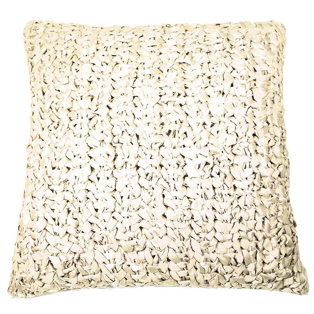 Ribbon Knit pillow is hand-knitted from chic ribbon. The perfect addition to any bed or sofa for texture and a pop of color.