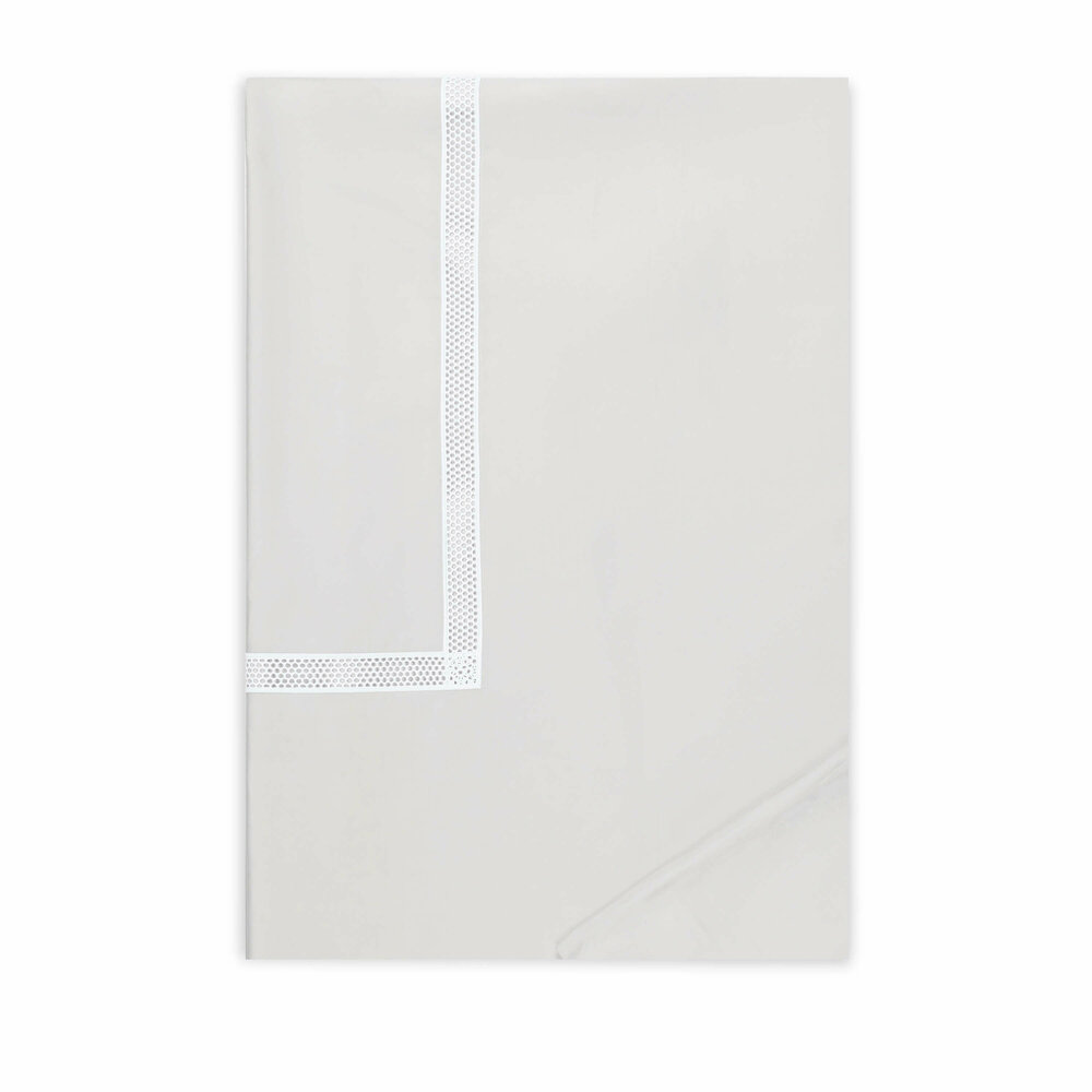 Charming and carefree, a guipure Swiss lace embellishes our 500 thread count Italian percale.