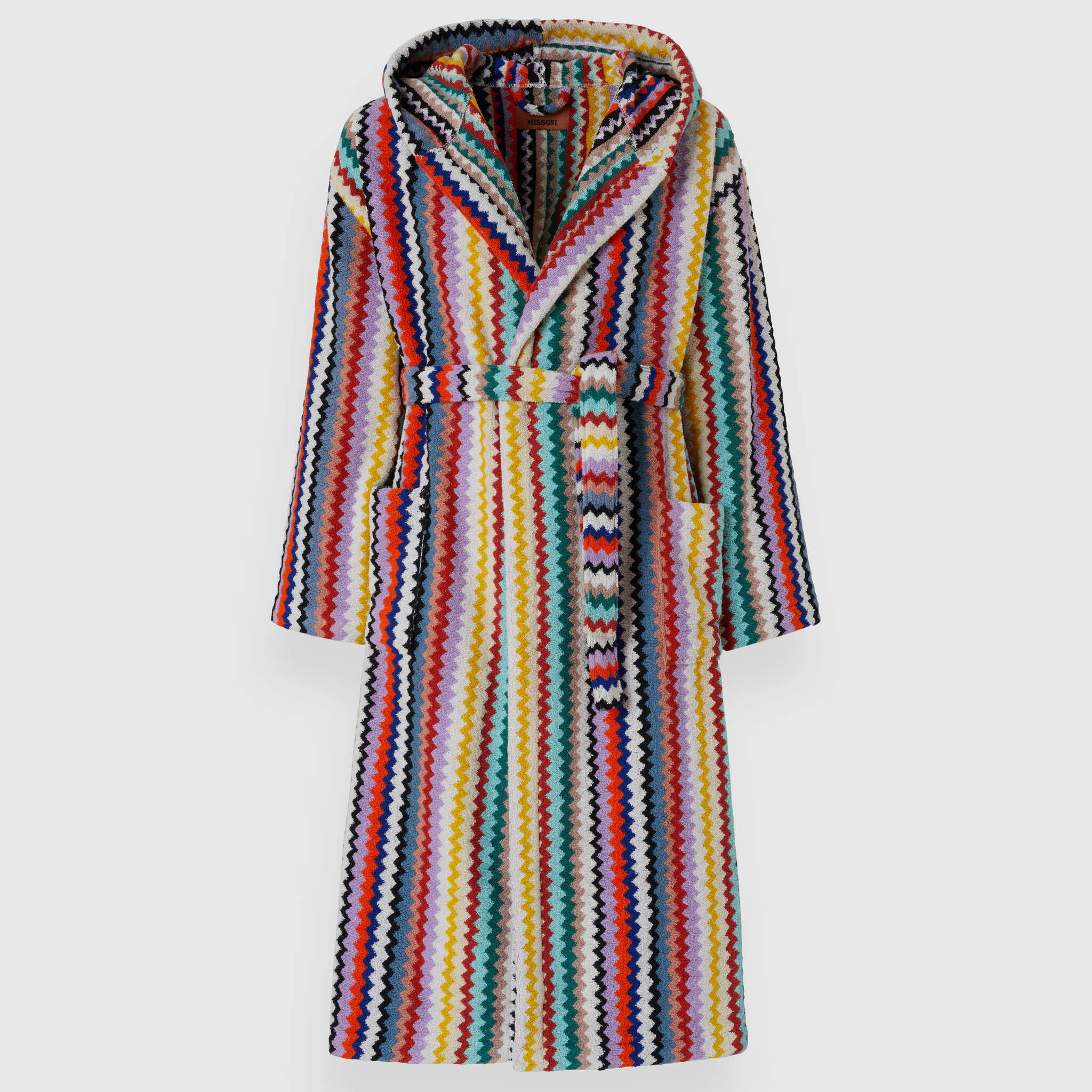 The Riverbero bathrobe embodies the distinctive elegance and comfort of Missoni Home. Made of soft cotton terry, it features the inimitable zigzag pattern that catches the eye and adds a touch of liveliness to everyday life. Complete with a waist belt, hood and patch pockets, the style offers not only practicality, but also an iconic style that conveys the unique essence of the brand.