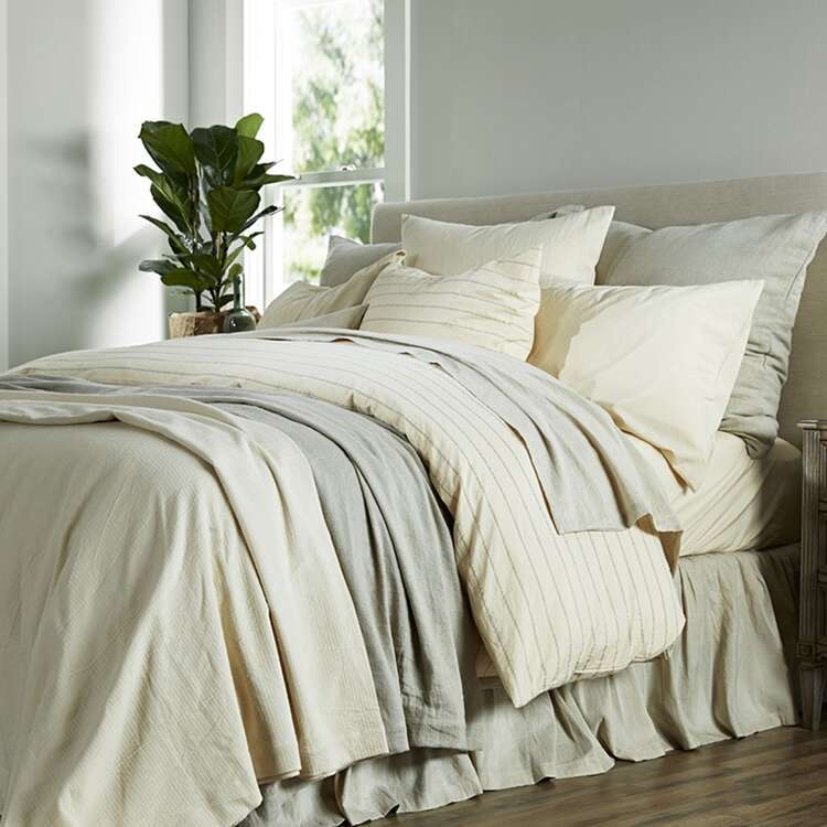 This lightweight, organic cotton and linen blend, is accented with a sophisticated stripe to create a stunning, all-natural look and feel.