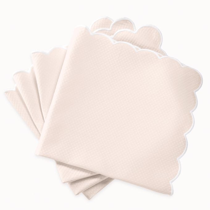 In classic diamond pique with a scalloped edge, Savannah Gardens is a longtime staple of the Matouk table linens collection. Done in a cotton/polyester blend, it is easy to care for (just machine wash and tumble dry), making it ideal for everyday.