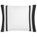 Shams: Solid sateen body, with vertical 2.5" applied borders and 1" insets, finished with a knife edge.