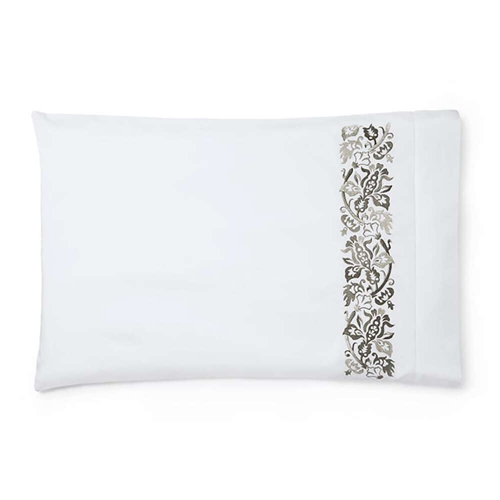 Plumes of the most lush and exquisite stitching decorate our soft Italian extra-long-staple cotton percale, scripted like an ode to the Art Nouveau movement. Styled from an antique piano scarf, every note is pitch-perfect and created in the same noble tradition of craftsmanship