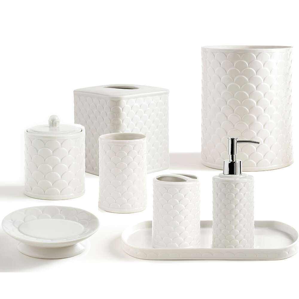 Crafted from finely embossed porcelain, our Scala accessories bring aquatic-inspired style to the bathroom with the elegant scale patterns of each accessory.