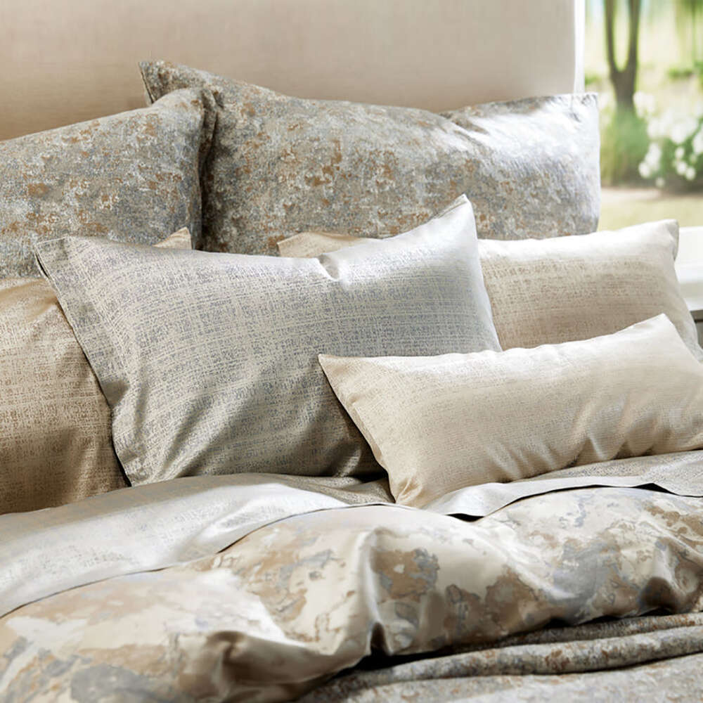 This abstract geometric design adds subtle sophistication to any room. Woven from a blend of silk and cotton, this lightweight fabric is great for year-round luxury.