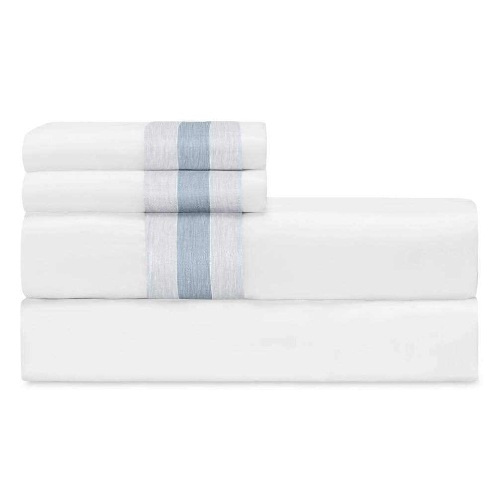 Harper Flat Sheets are designed with a solid white percale body, a 3" base inset and a 1" top inset, along the cuff hem.