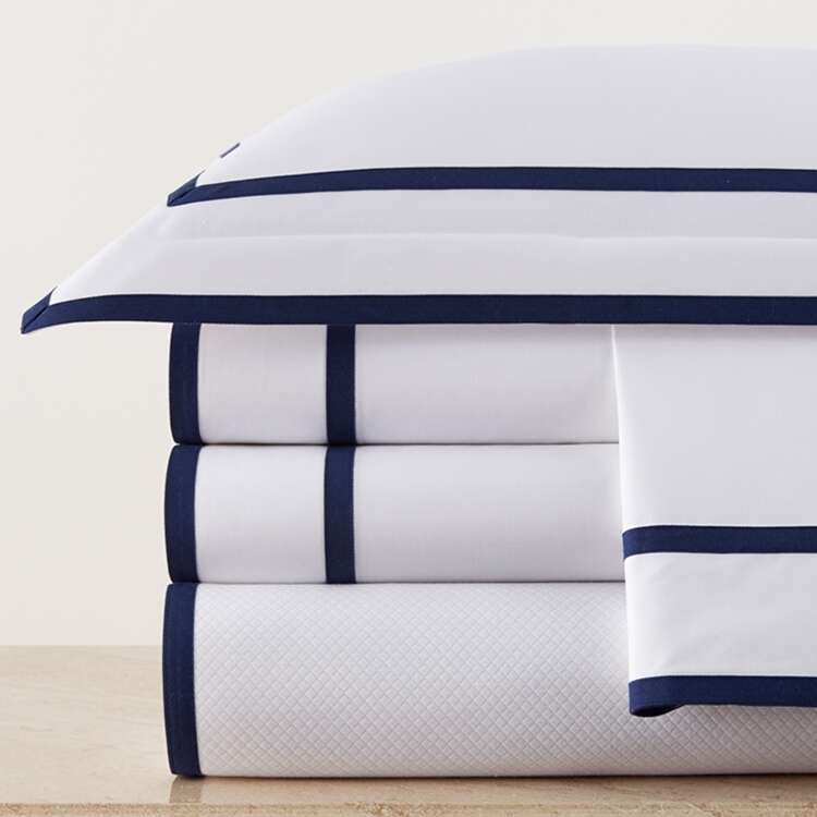 200 thread count Egyptian Cotton Percale in White and Ivory with your choice of over 50 tape trim colors.