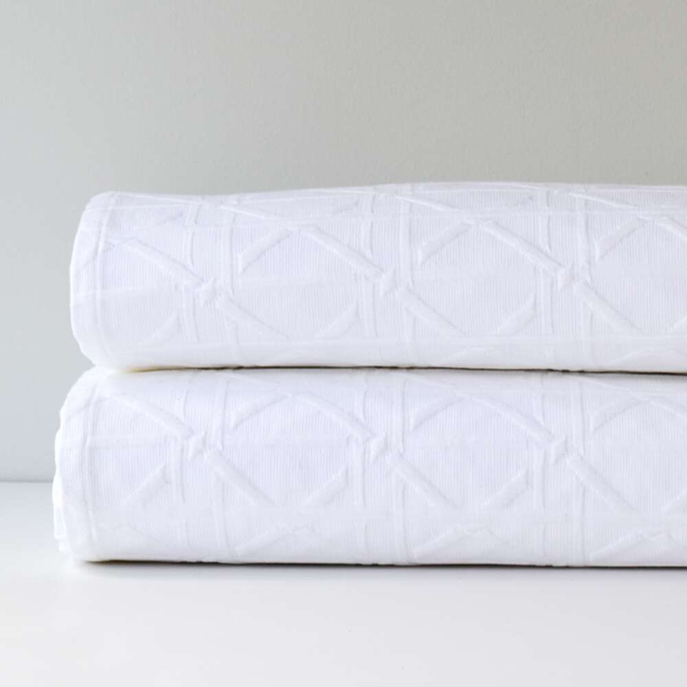 Fabric Origin: Portugal Our soft cotton "bamboo lattice" Matelasse available in White.