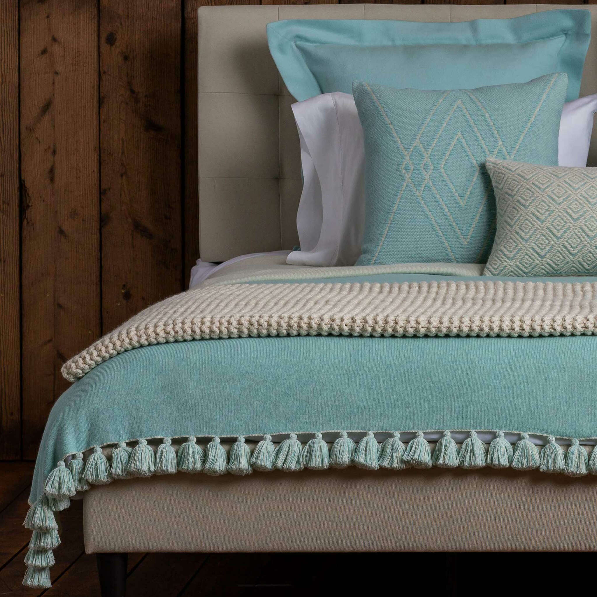 The Sydney Bedding Blanket adorns a queen or king bed in a variety of showstopping beautiful colors, all in two tones. Each color option can be flipped to either side depending on your mood or the season. These double sided medium-weight pompom throw blankets are ideal for someone with more than one favorite color and exquisite taste. This baby alpaca queen or king bedding blanket generously covers even a a large bed. It's a sustainable and stunning alpaca wool blanket to add to any environment - plus it's hypoallergenic and softer than cashmere.
