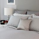 A clean geometric design in charcoal and white, the 100% cotton Tessella is the epitome of sophistication and contemporary elegance. A striking monochromatic linen, Tessella is teamed with our new two-toned Chambray fabric in Silver, which is the perfect companion fabric for such a dramatic design.