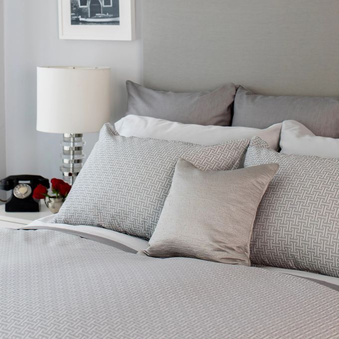 Duvet Cover: Backed in Capri Cloud or Pattern overall, ½" flange, Hidden zipper.