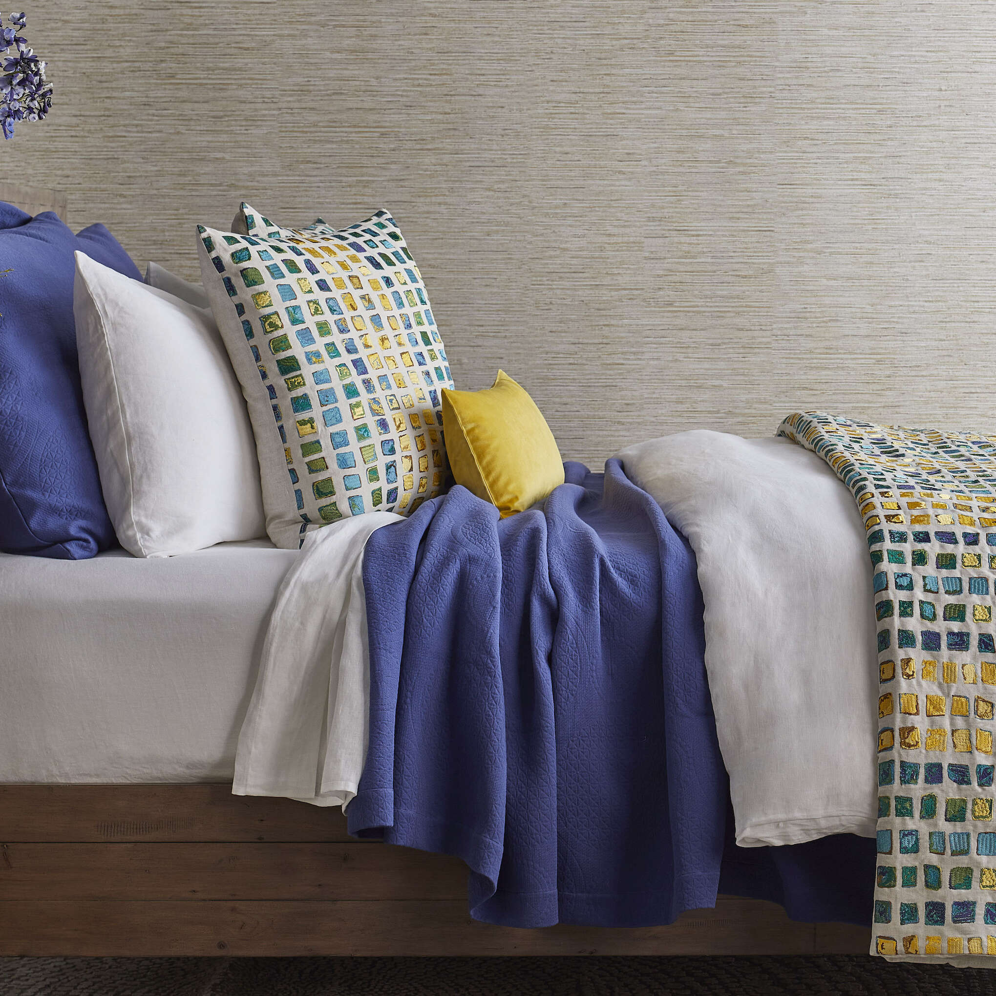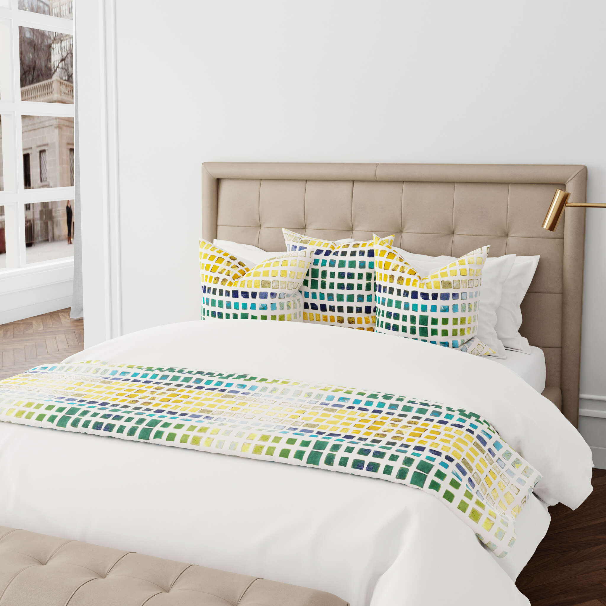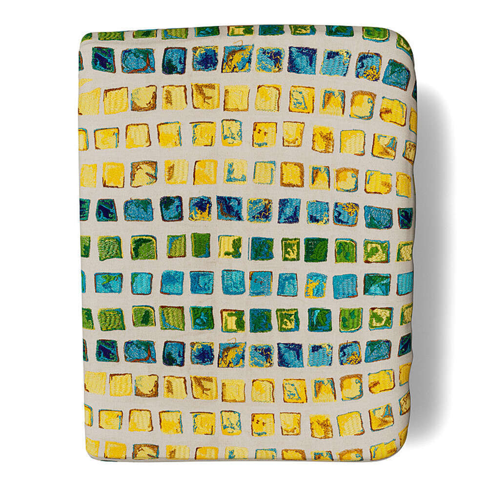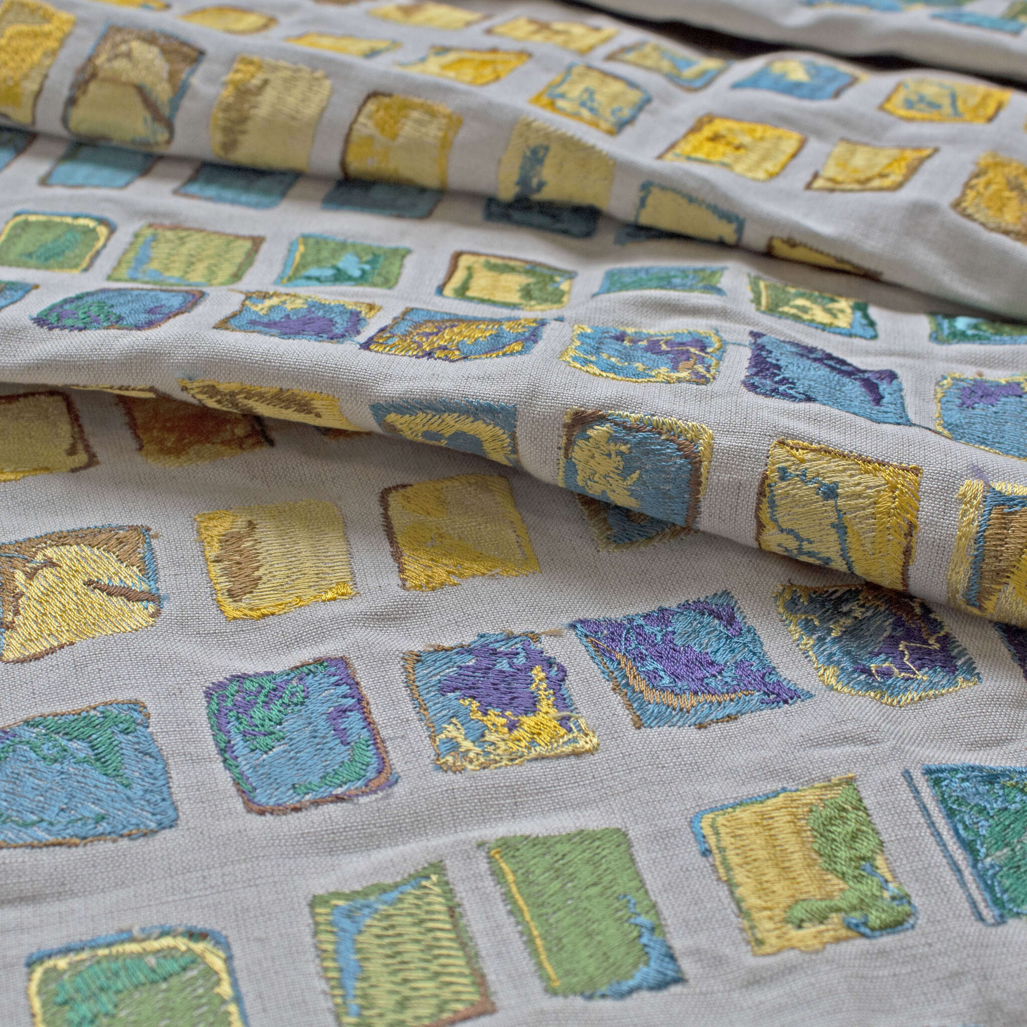 Inspired by a medieval mosaic Tesserae, this fabric features the shades of the color wheel.