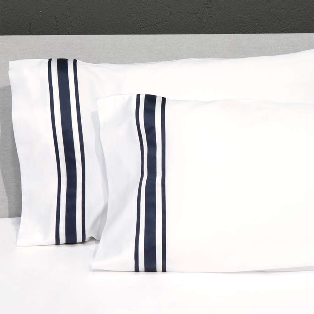 Duvet Cover: knife edge, buttons closure, inside sateen ties; finished with a 2.75" applied border in a “U" shape.