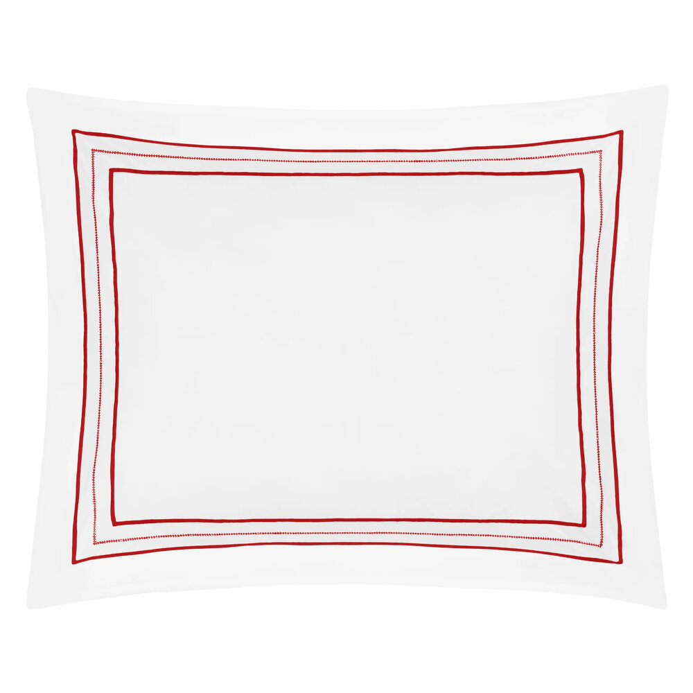 Triad Shams are designed with a solid percale body and a monochrome trio of satin stitch - hemstitch - satin stitch along the flange hem.
