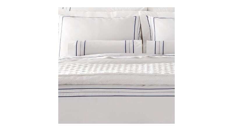 A monochromatic trio of embroidered satin stitch and hand-guided hemstitch that grace this Italian percale offer a simple, elegant and refined finish.
