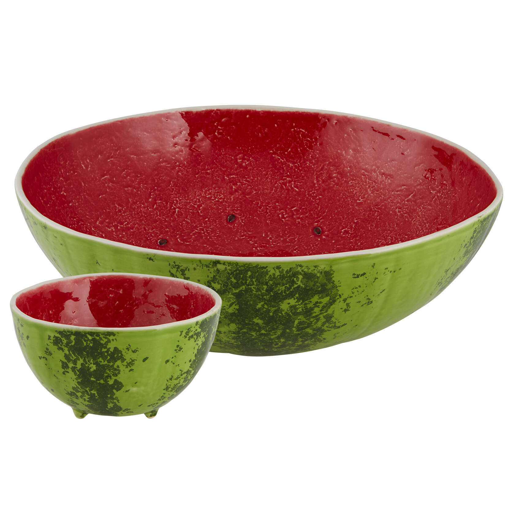 As a continuation of the vegetable and fruit collection by Bordallo Pinheiro, there is this collection of juicy and colourful watermelons. The collection includes bowls, fruit bowls, cake plates and presentation plates, these pieces replicate the fruit through irregularities in the shapes, the texture of the fruit pulp, the details on the seeds and the bright colours and painting on the pieces.