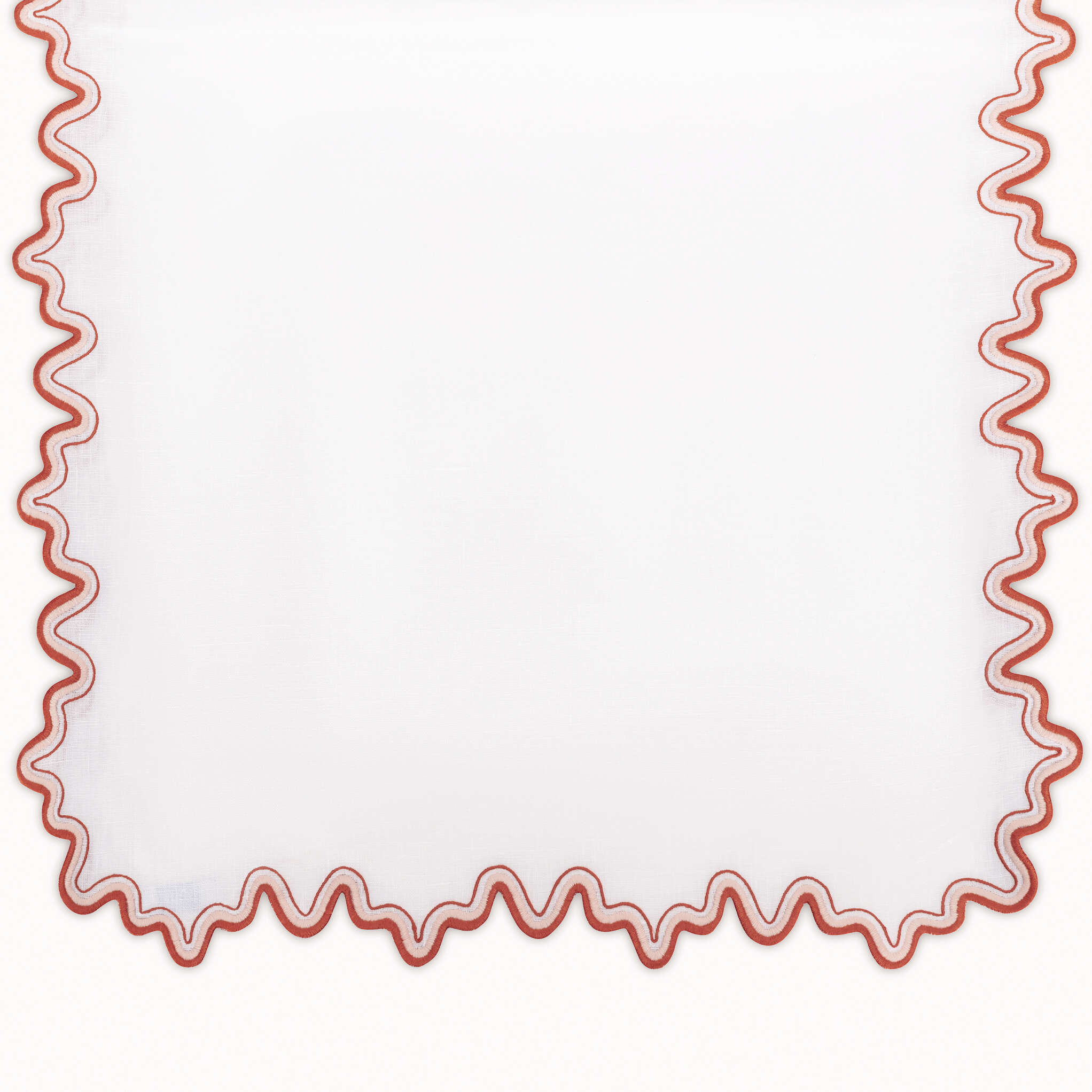 This meticulously embroidered tabletop style features a two-tone border on luxurious linen. It adds a whimsical feel to any dining space.