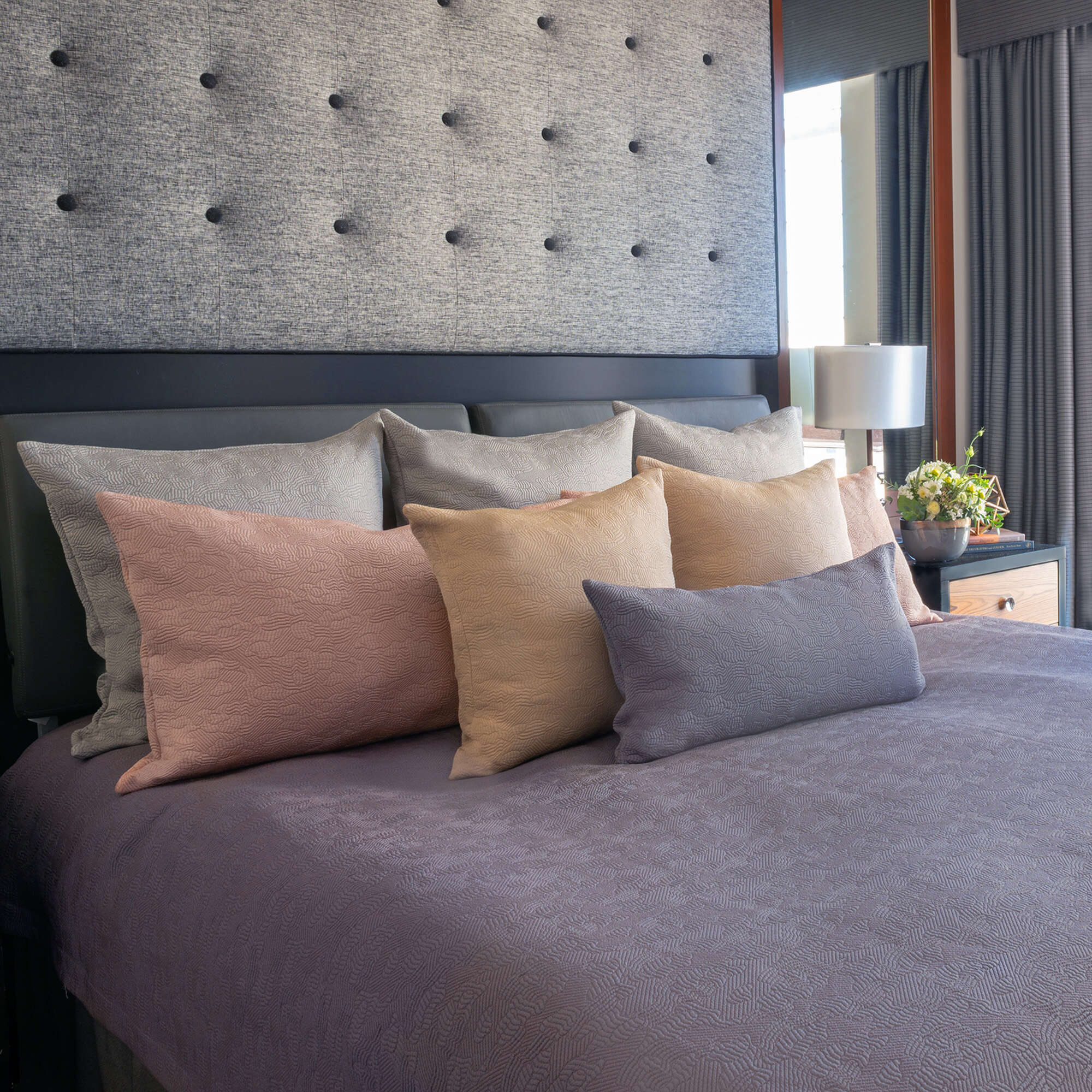 Fabulous Zora is the perfect way to add luxury and sophistication to your space. This stunning matelassé is a textural woven masterpiece. The finest Italian silk and Giza Egyptian extra-long staple cotton are used to create a soft, shimmering, and opulent coverlet and shams. The fine, abstract pattern comes to life with four rich neutral, and versatile hues.