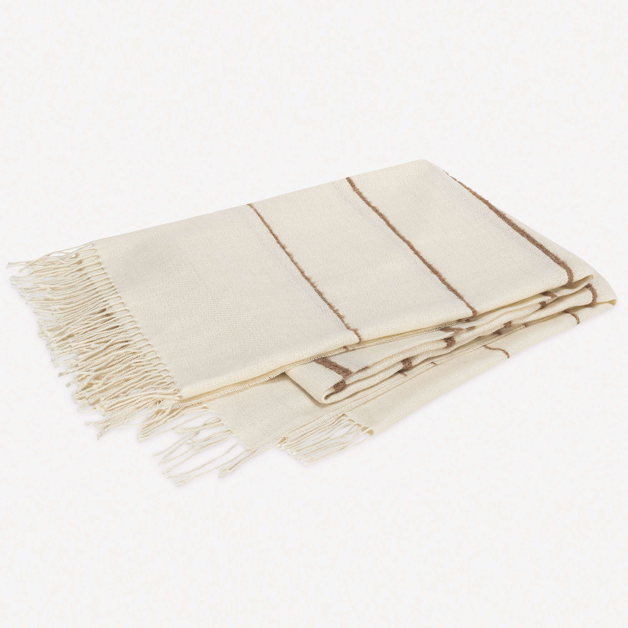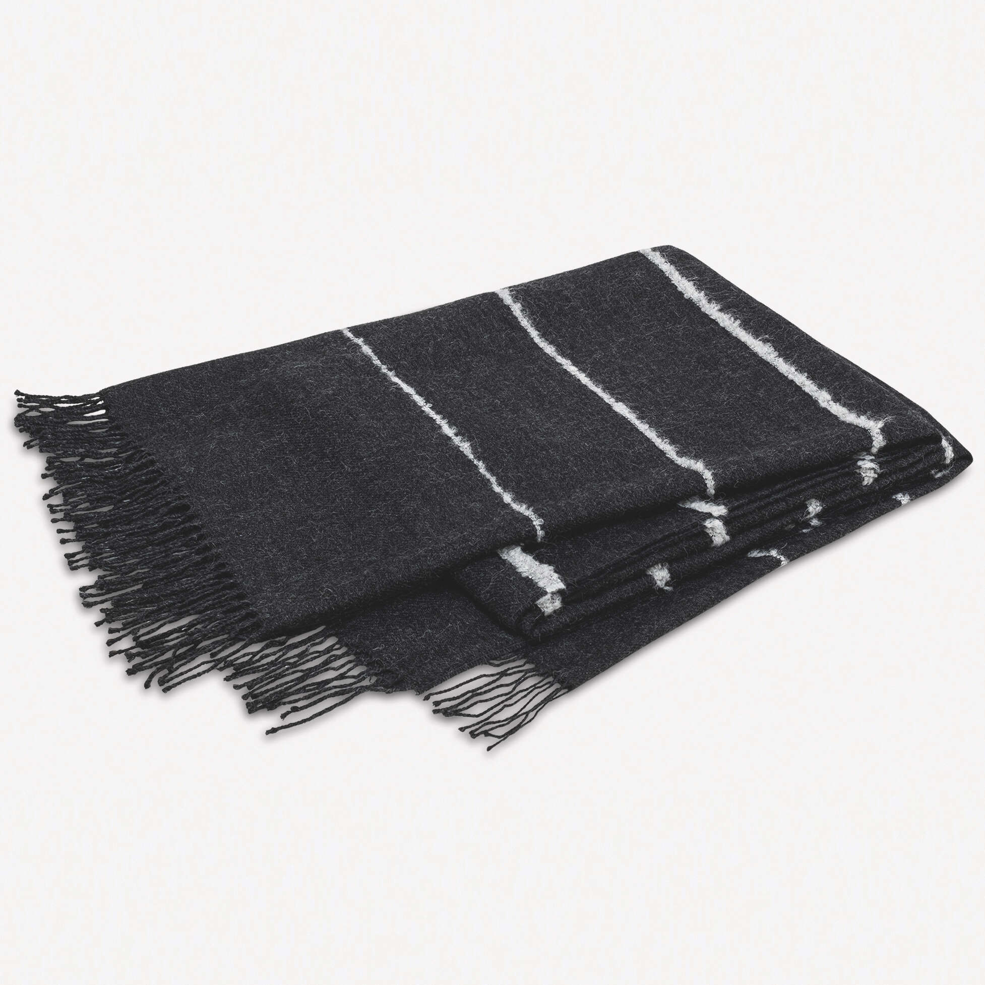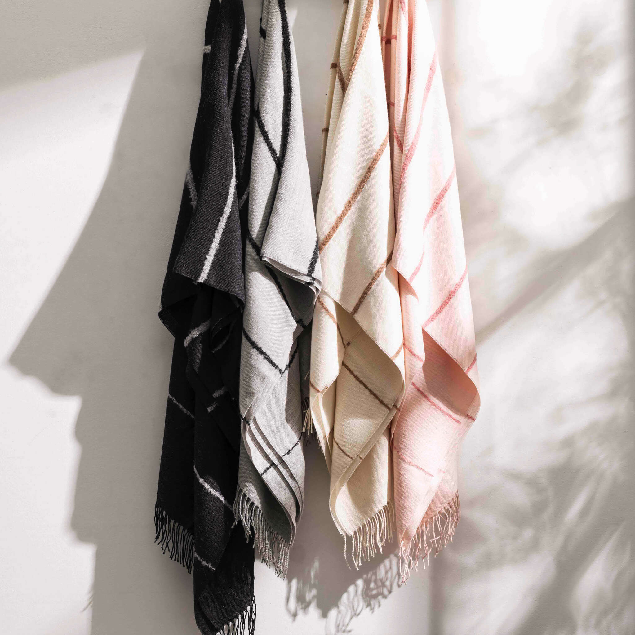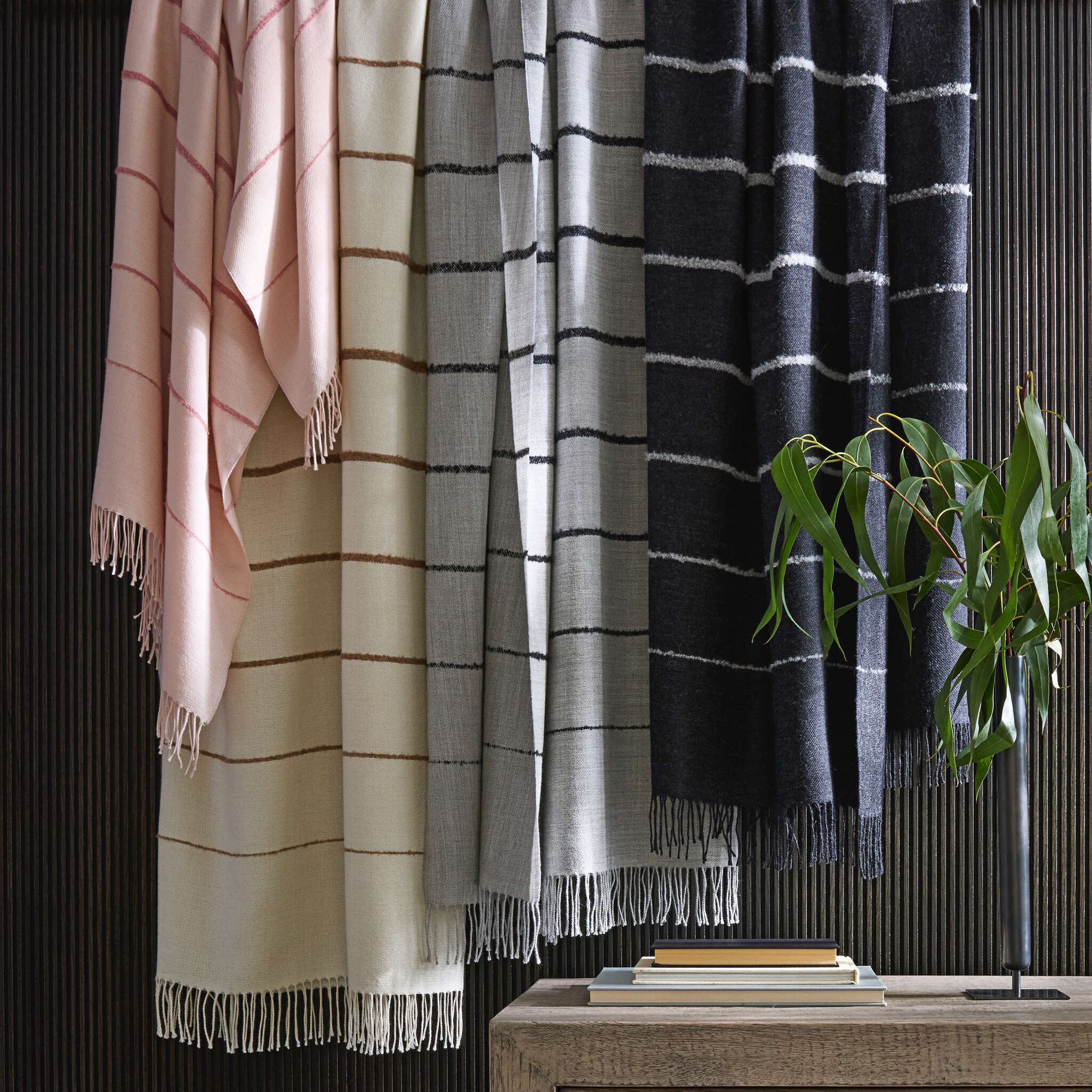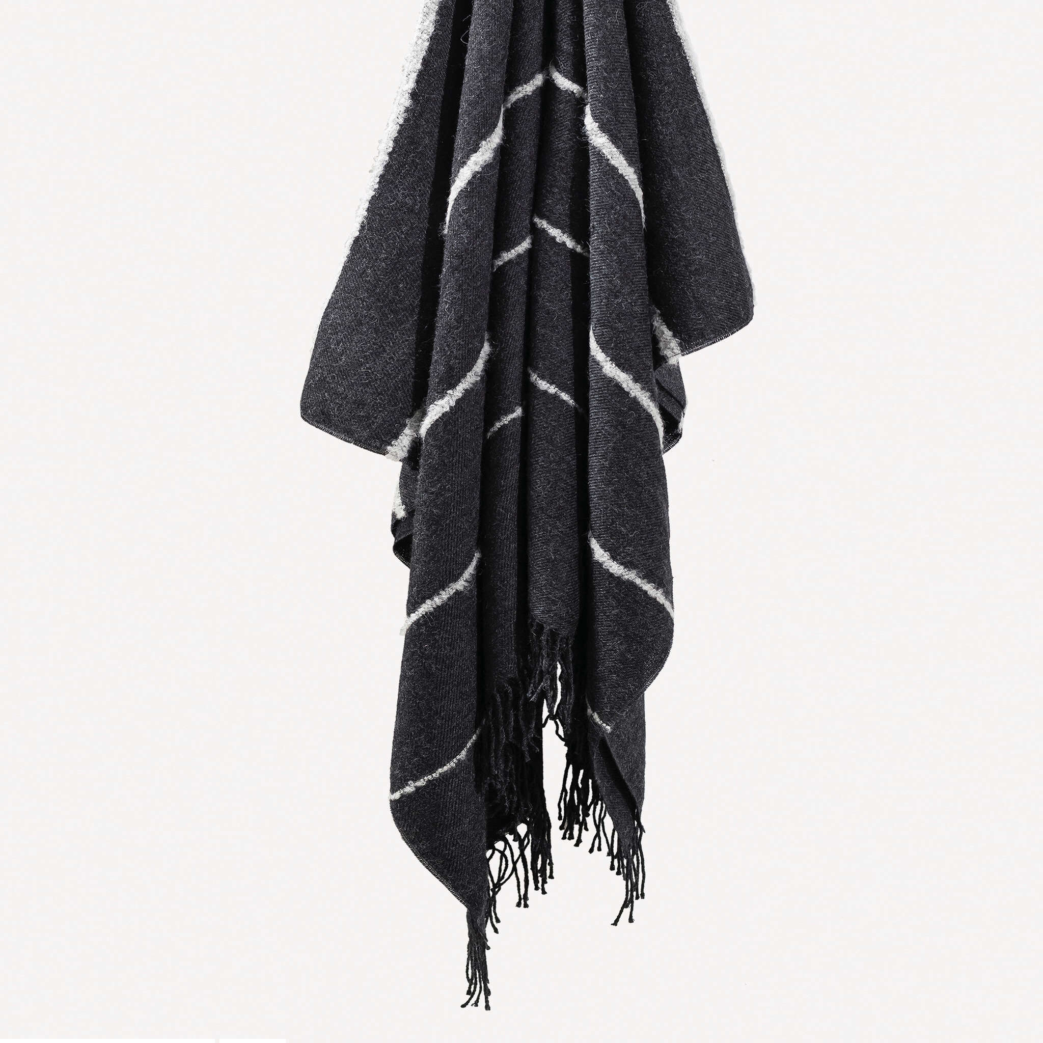 A luxe travel wrap, our Amelia Stripe throw is a versatile piece to wear on airplanes or anywhere you need an extra layer of warmth. This baby alpaca style features bouclé striping in a basketweave pattern and fringe detailing along its edge.