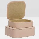 The colors of our Dozza make for a beautiful shop display, gray, light gray, and dusty rose highlight this design's latest look. Rounded edges and a slightly padded top are the thoughtful details of this exquisitely made piece. Pretty, versatile, and purposeful, sure to be a bestseller! Small and medium sold in a pack of two; large sold as nested set of two.