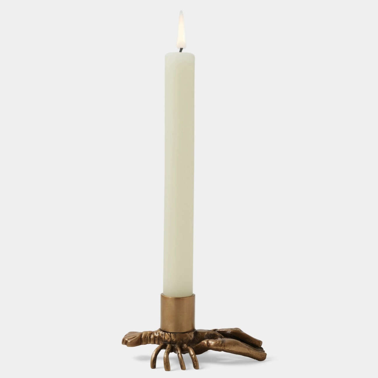 A quirky and artistic twist to the everyday candle holder, Marlin, the brass lobster features antiqued details and perfectly fits elegant tapered candles.